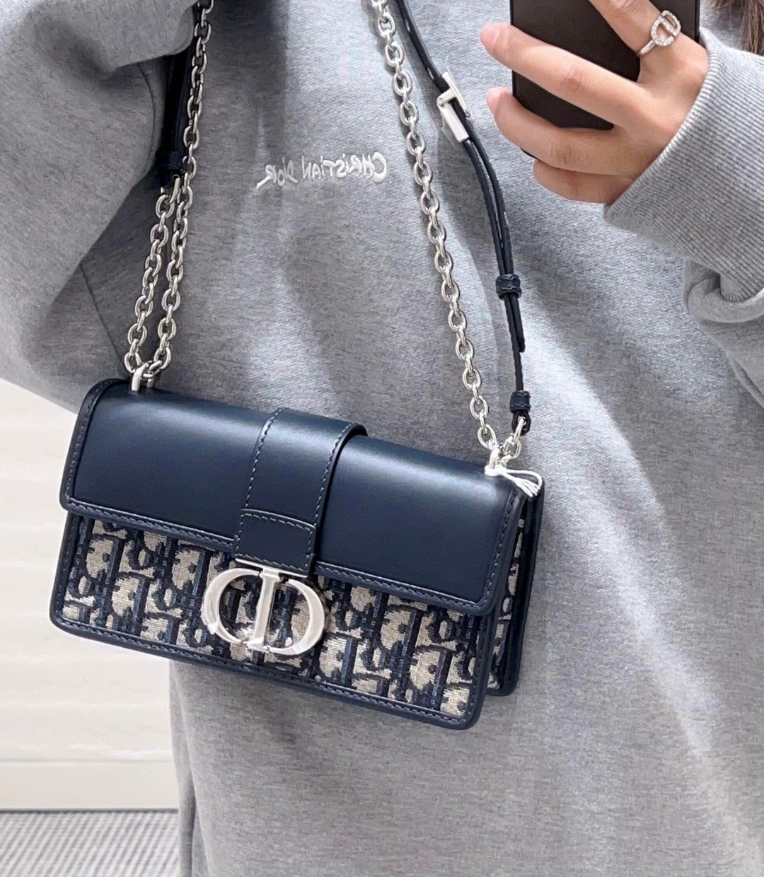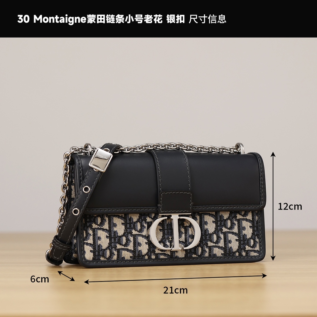 迪奥 蒙田 30 Montaigne East-West 链条手袋「蒙田银扣链条小号」(LZ)
