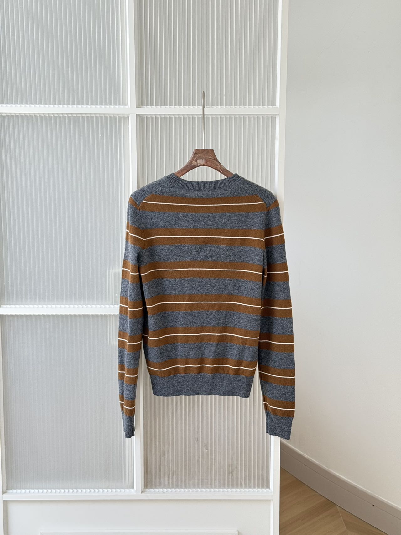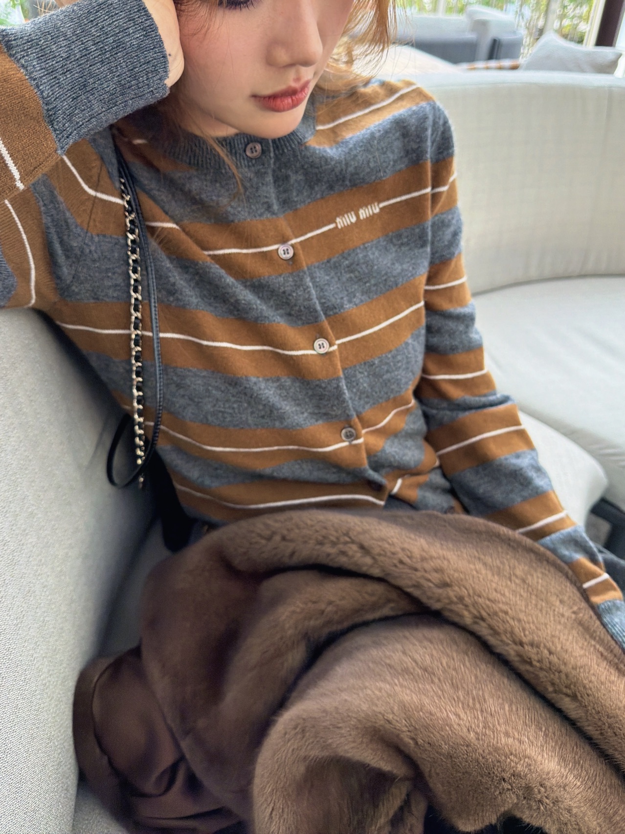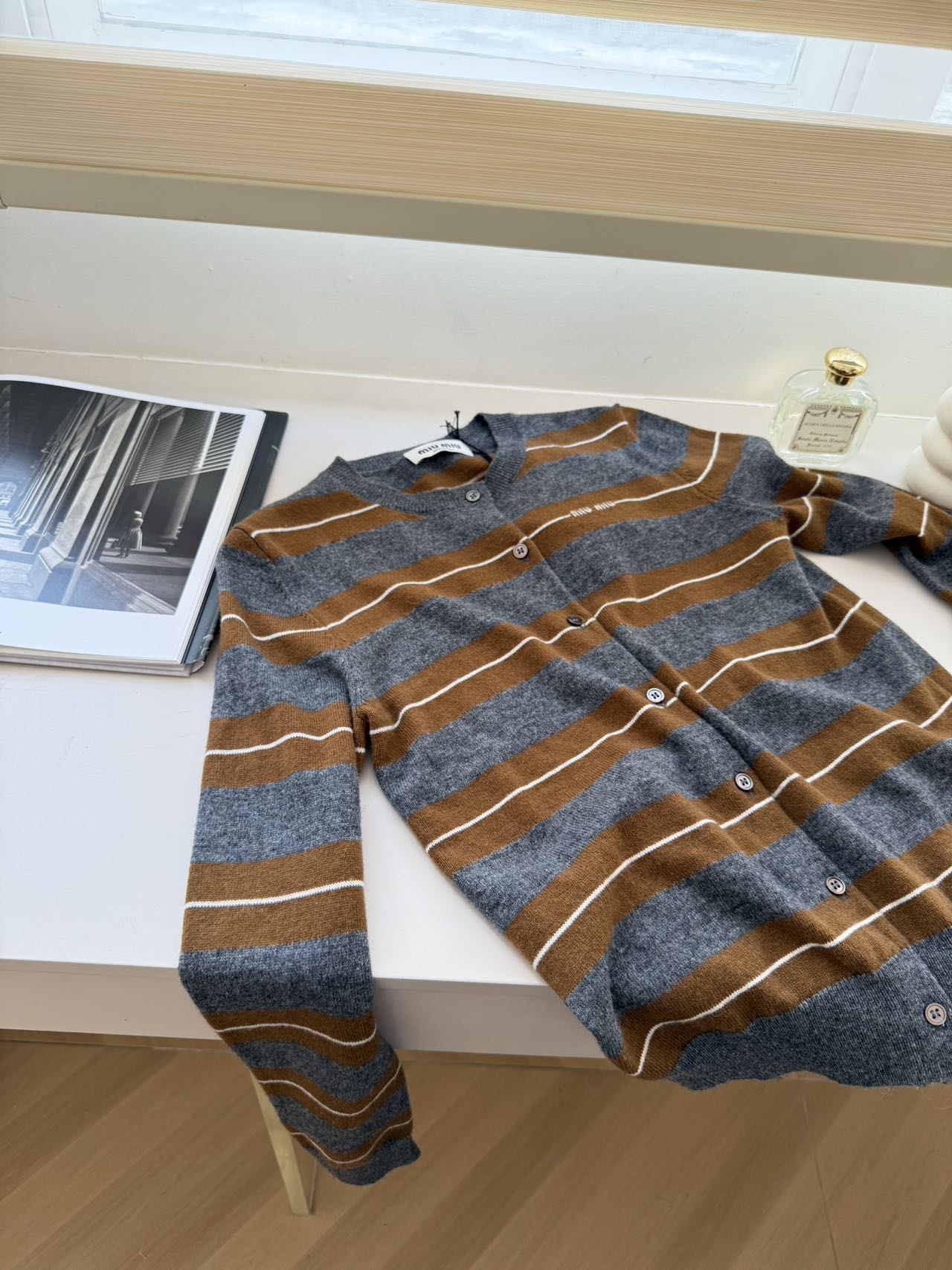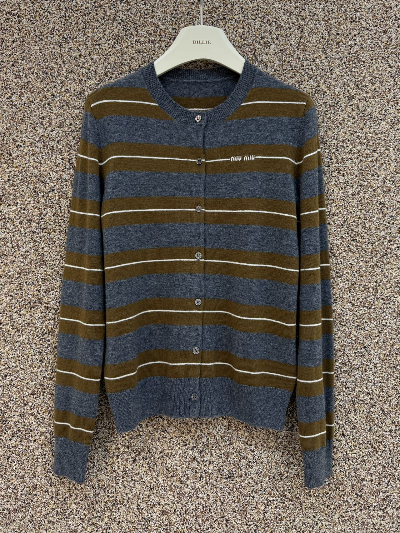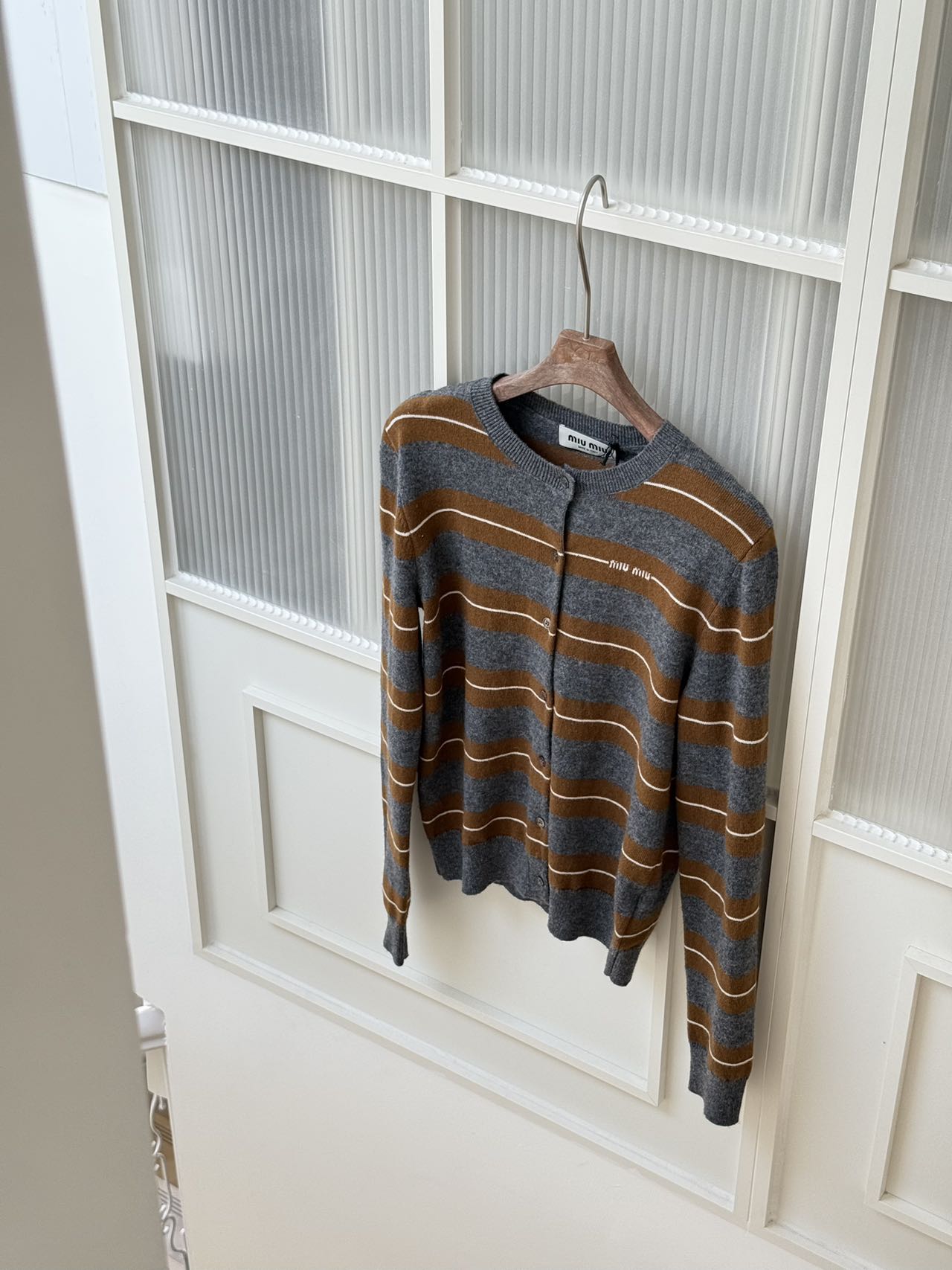 Miu Miu 2025秋冬系列羊绒真丝条纹圆领开衫