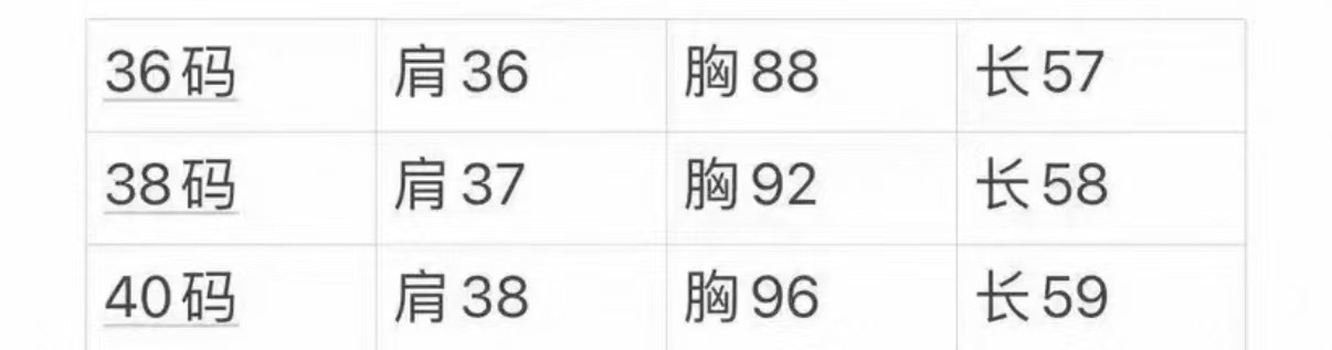 短款收腰设计,衣长45cm(36码),肩宽36cm,胸围88cm,下摆螺纹宽度4cm,穿着贴合身形不紧绷。