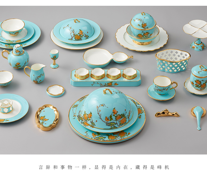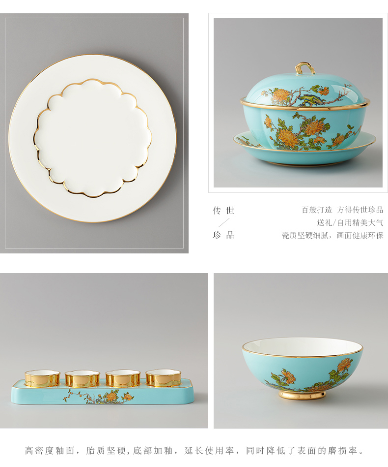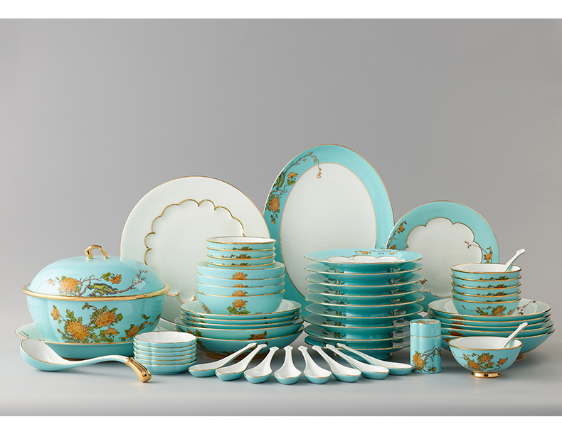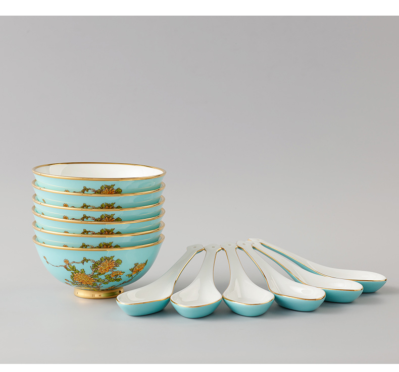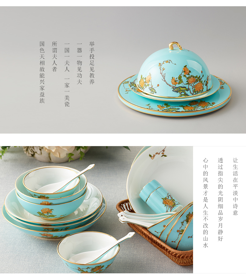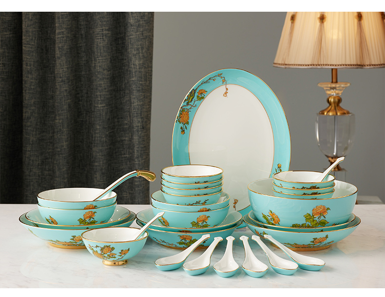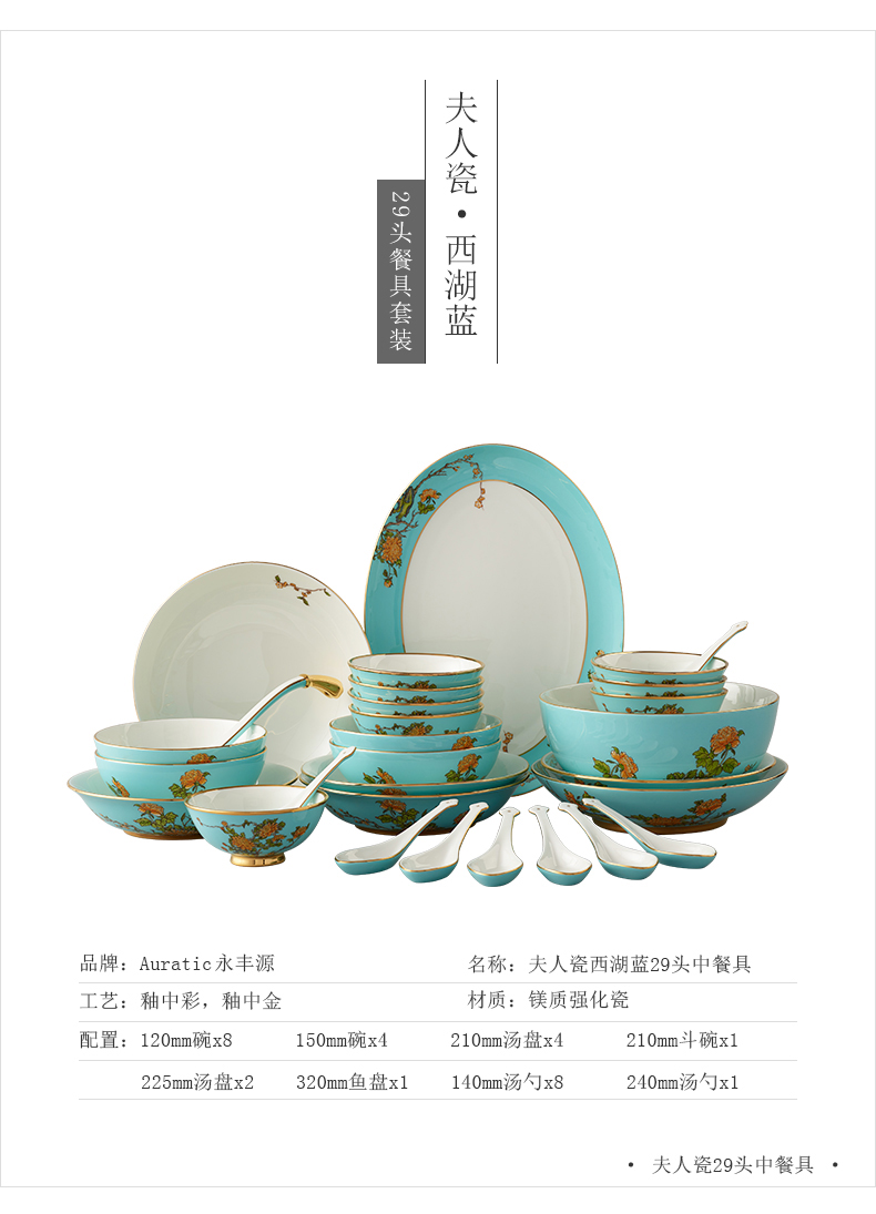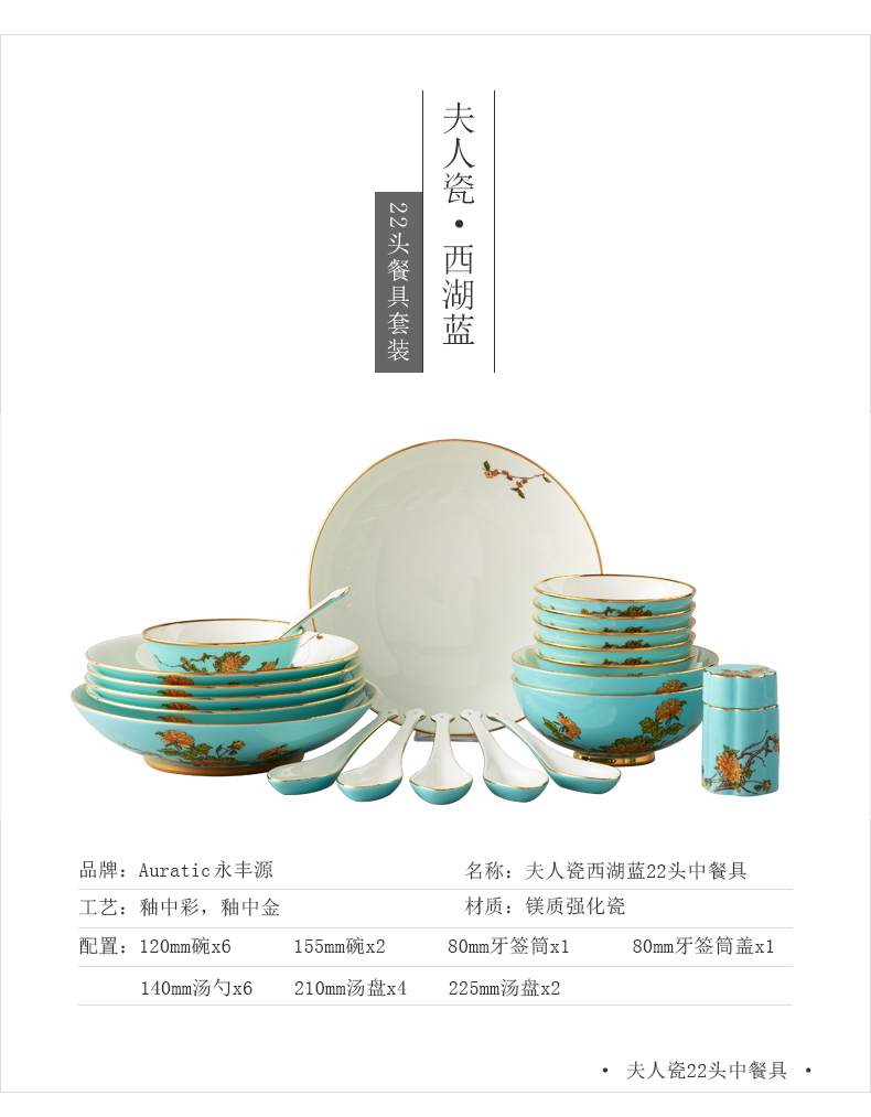 永丰源 夫人瓷西湖蓝22头中餐具 6人位家用餐具陶瓷饭碗汤盘套装