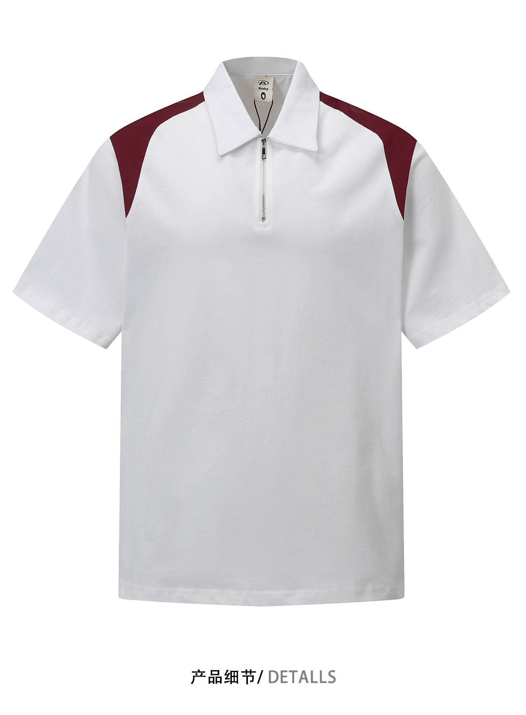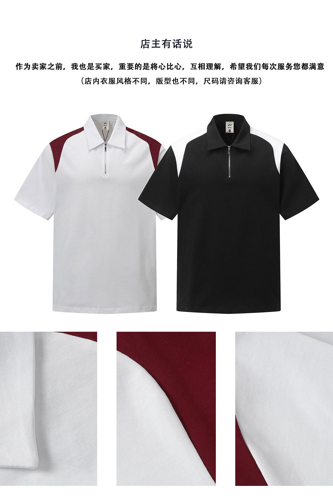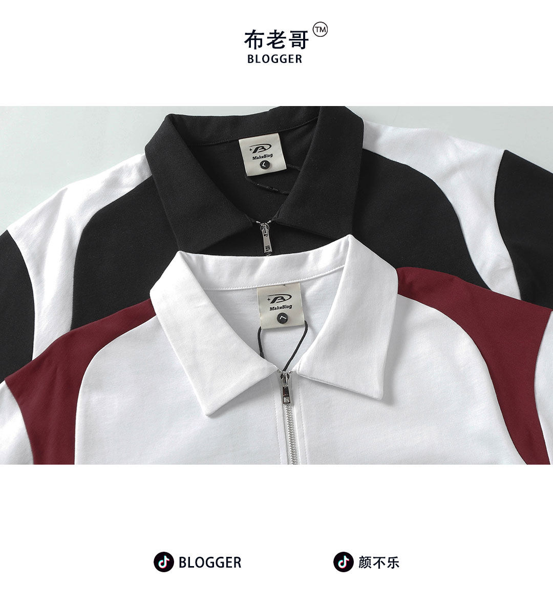 布老哥Blog美式复古撞色拼接拉链polo衫百搭重磅宽松拉链短袖D113