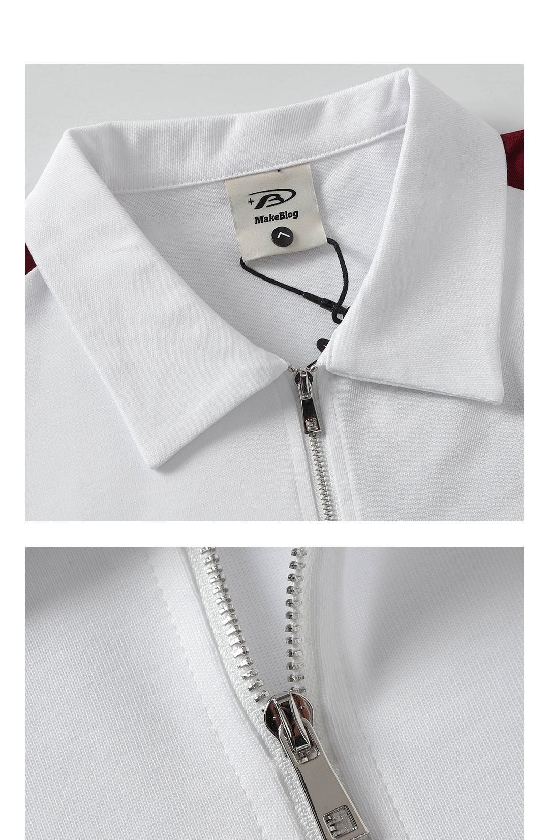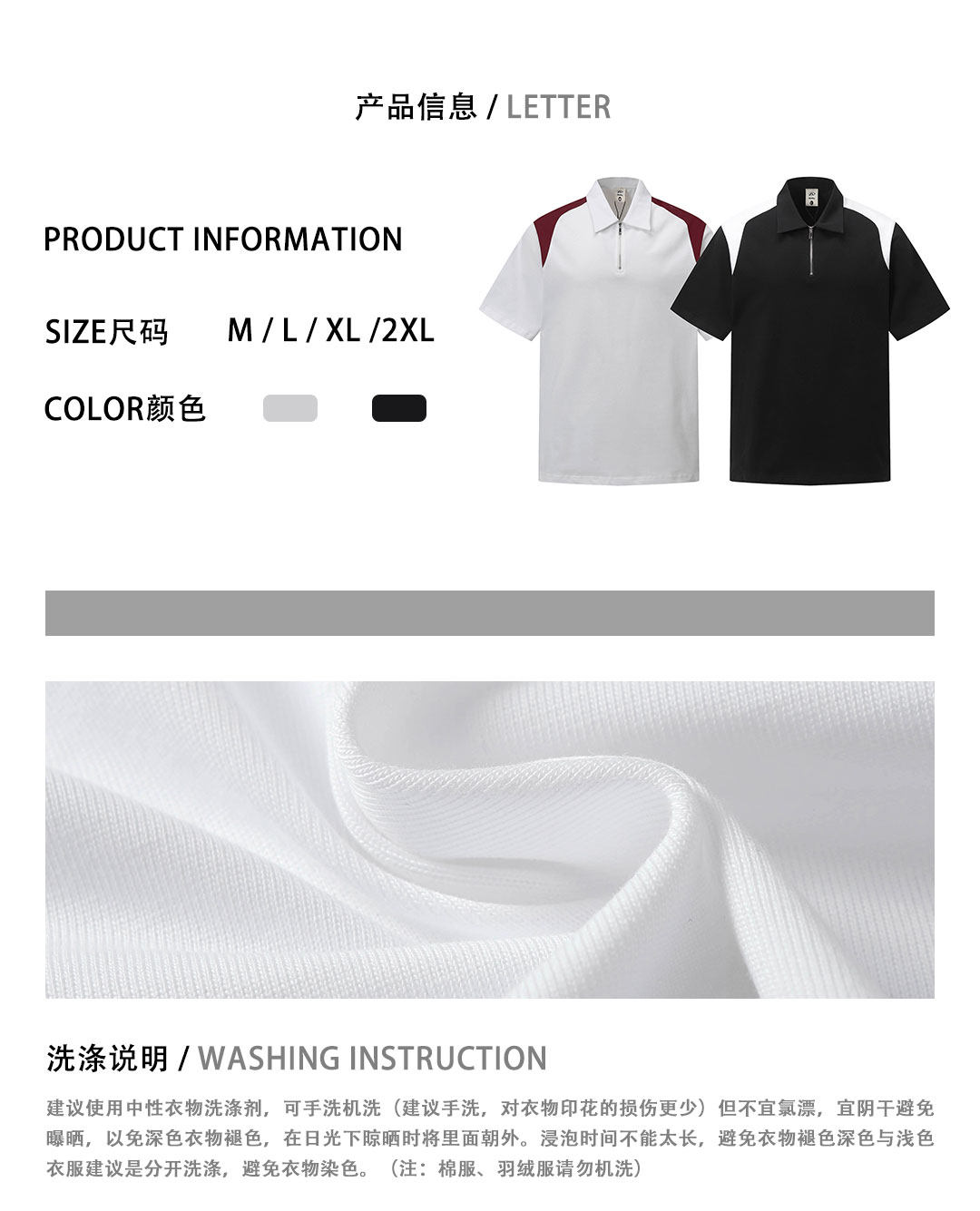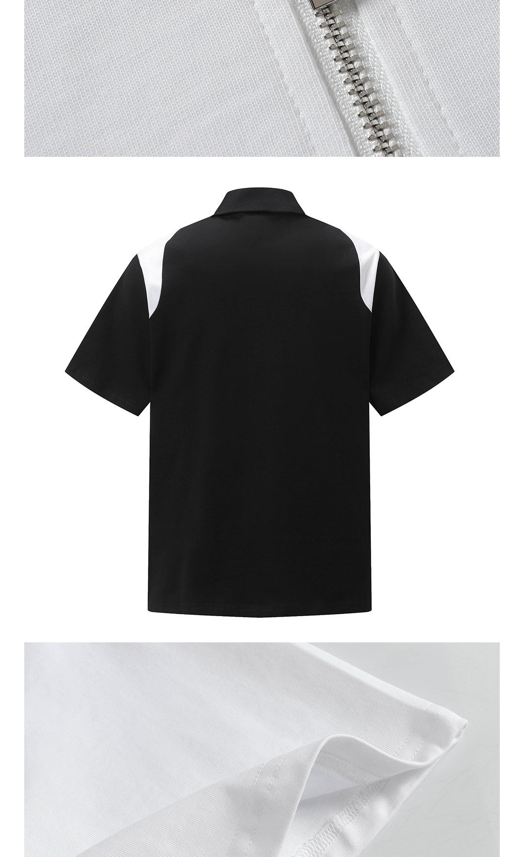 布老哥Blog美式复古撞色拼接拉链polo衫百搭重磅宽松拉链短袖D113