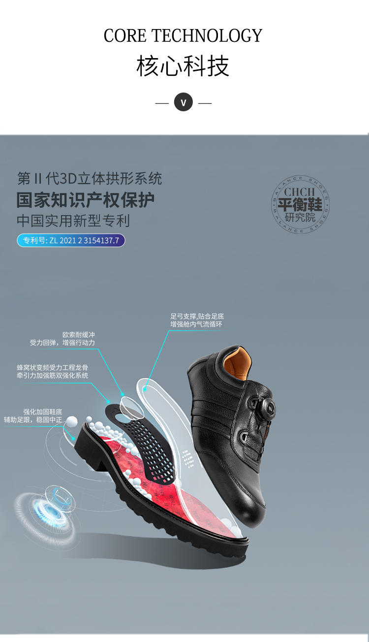 CHCH平衡鞋2024秋冬新品头层牛皮旋转按钮轻便泡发底商务男鞋CO2A2122