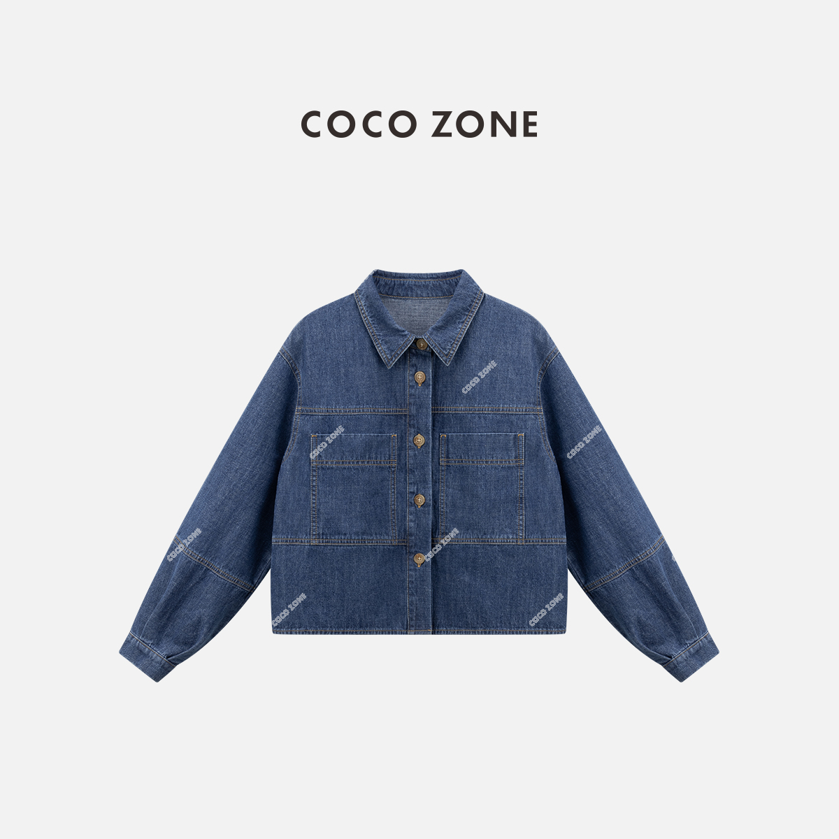 COCO ZONE "吉娅”时尚翻领单排扣牛仔衬衫百搭长袖上衣CC1B1312