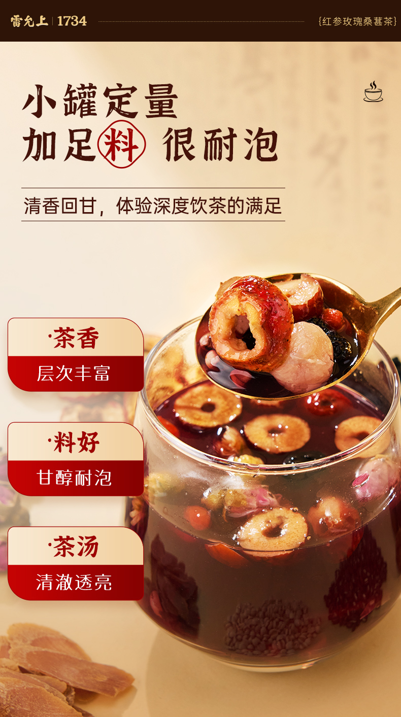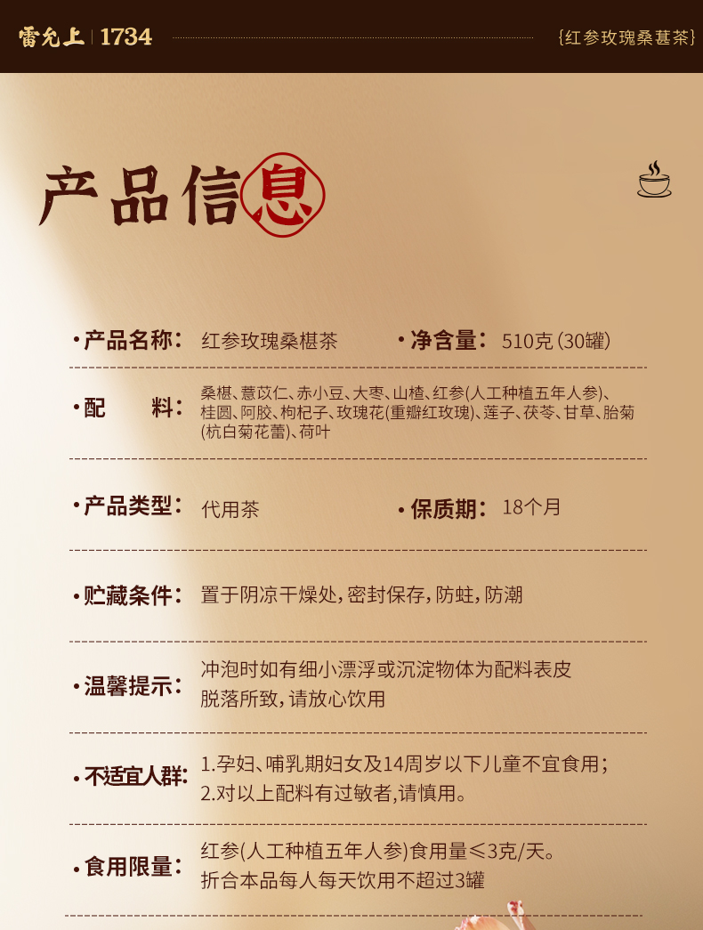 雷允上红参玫瑰桑葚茶510g/盒(30罐)