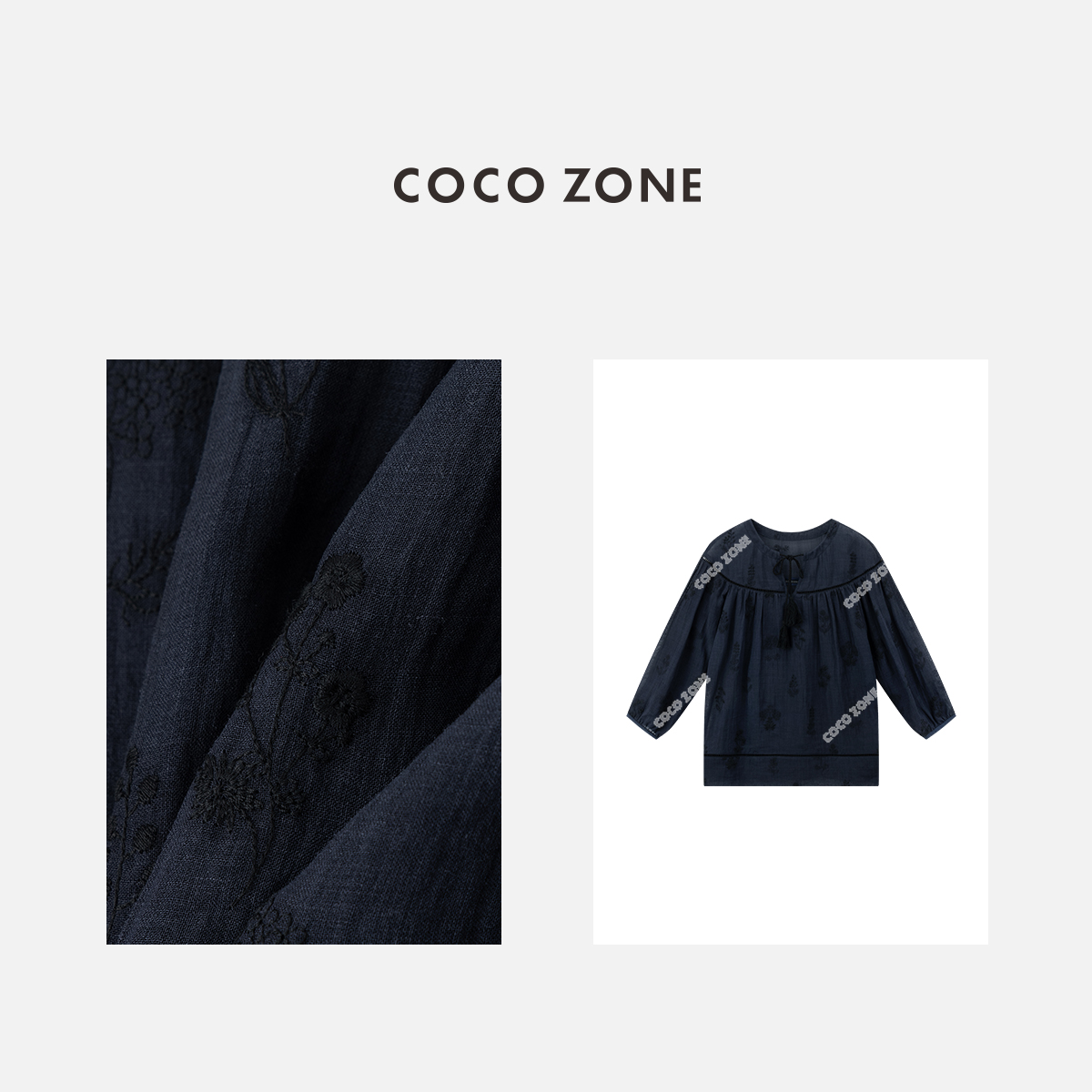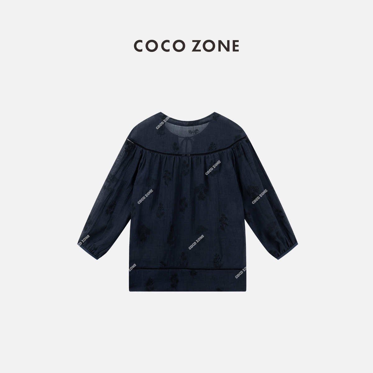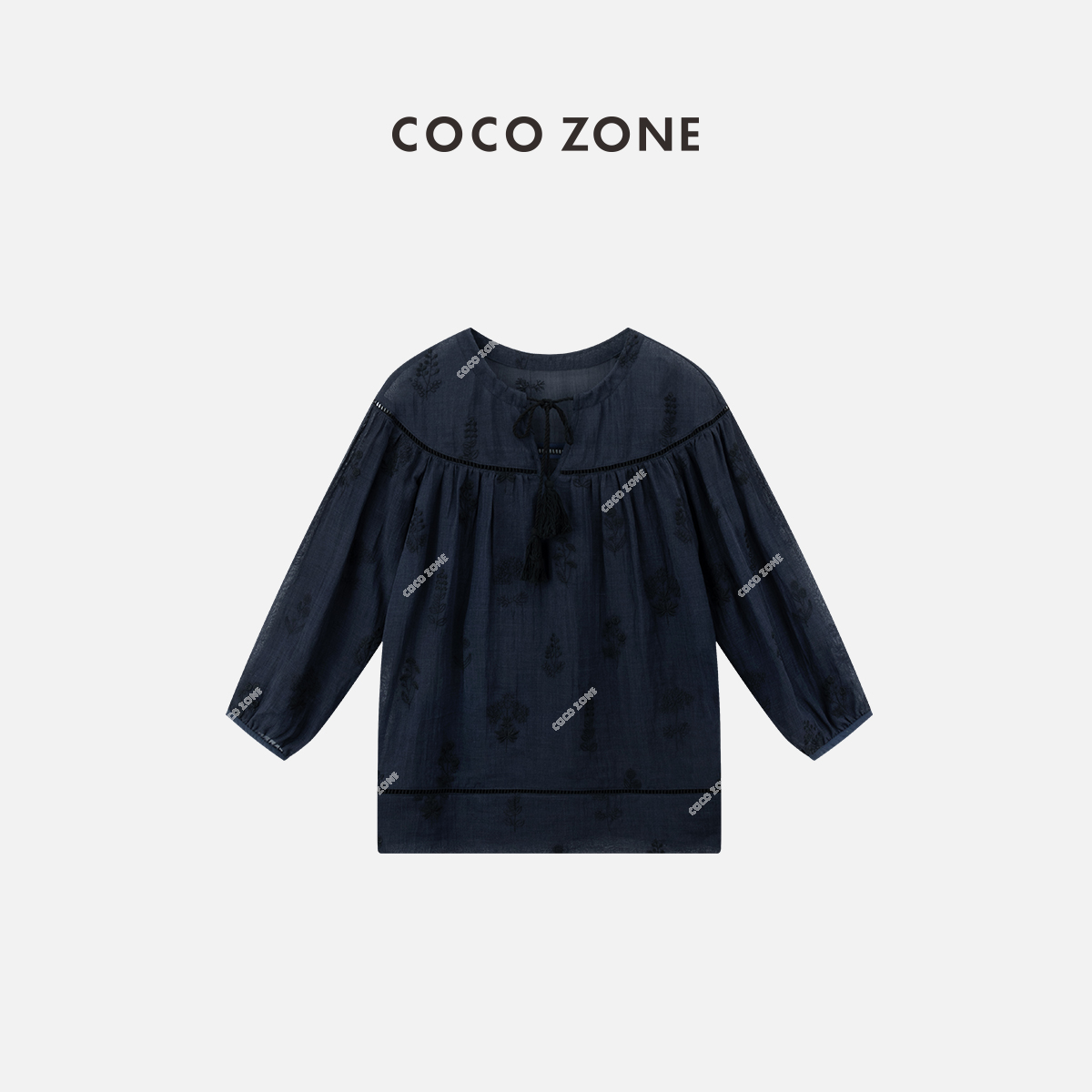 COCO ZONE 夏季圆领系带衬衫轻薄透气长袖上衣CC1B1256