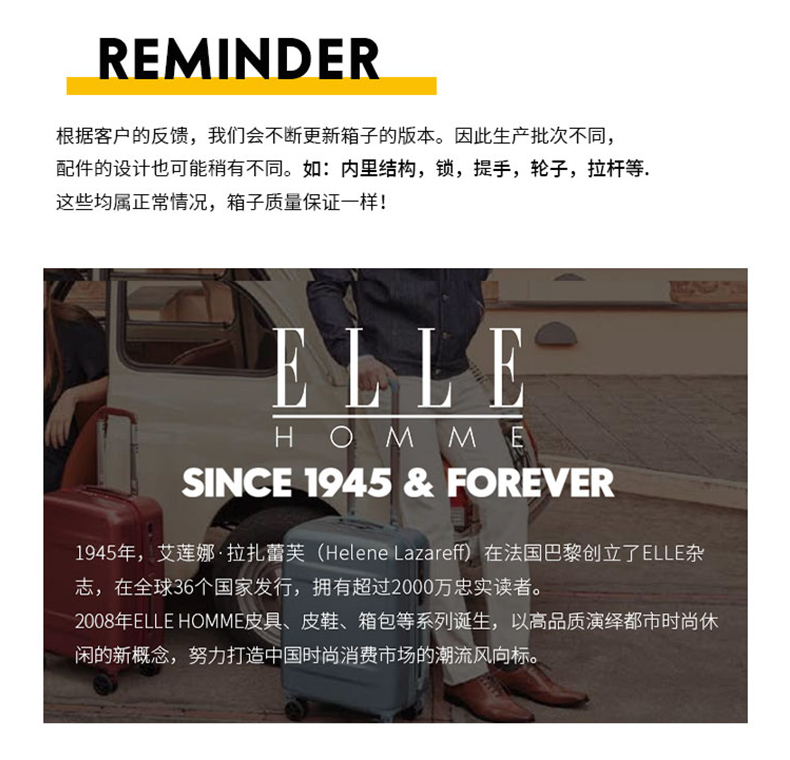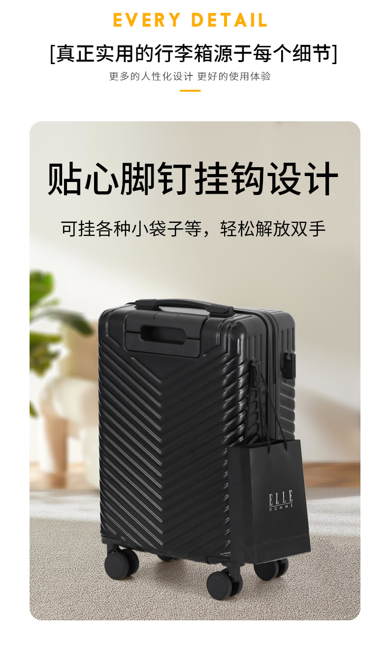 ELLE HOMME商务简约拉链旅行箱EH103