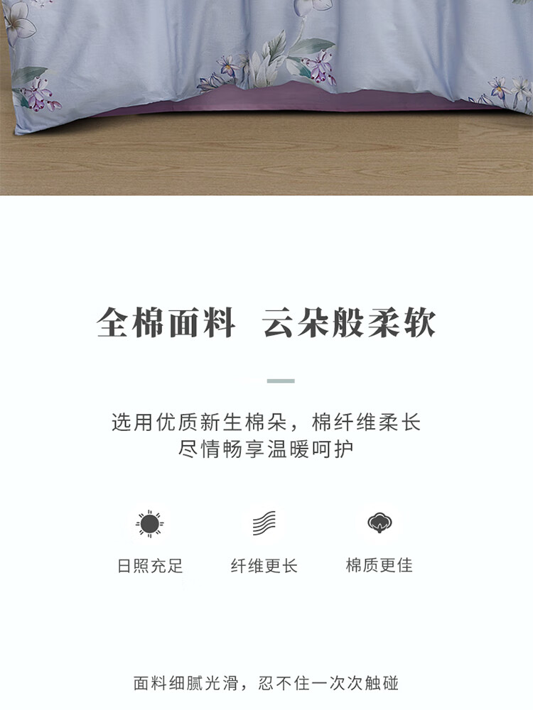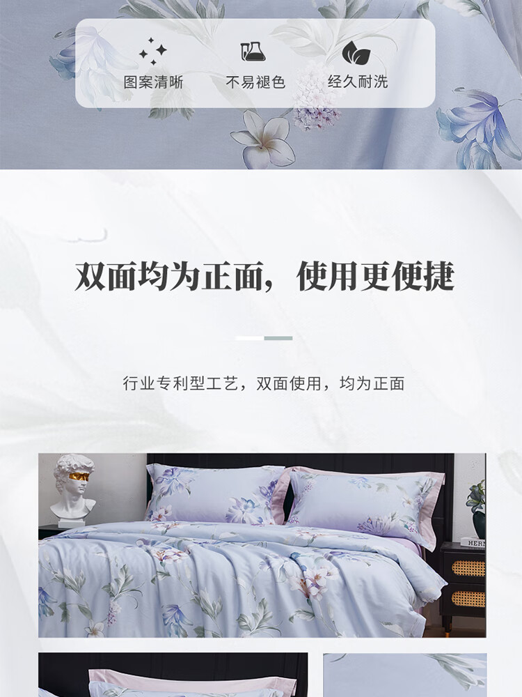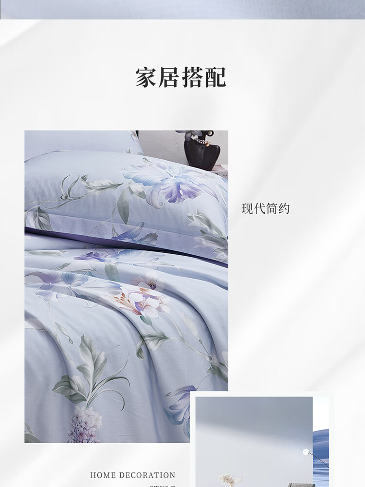 梦洁家纺40s纯棉印花四件套微风知晓200*230cm