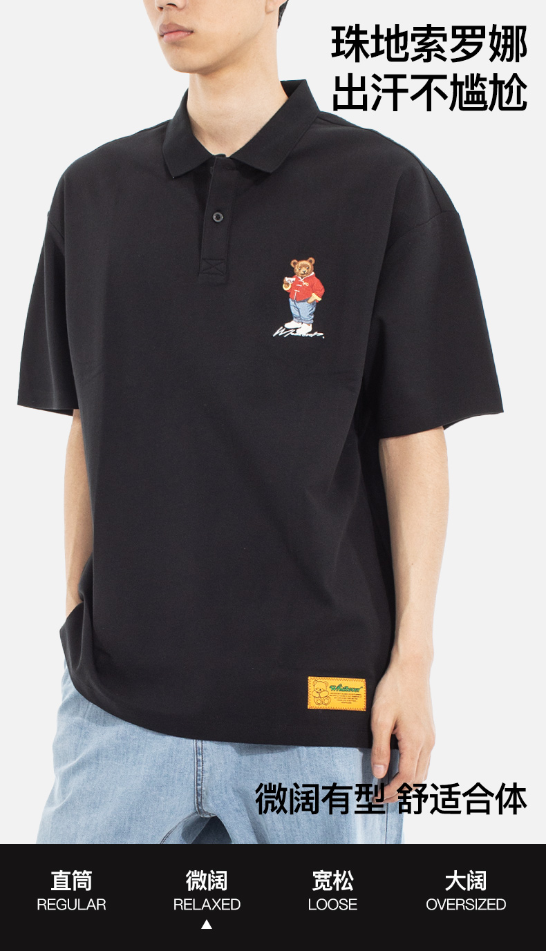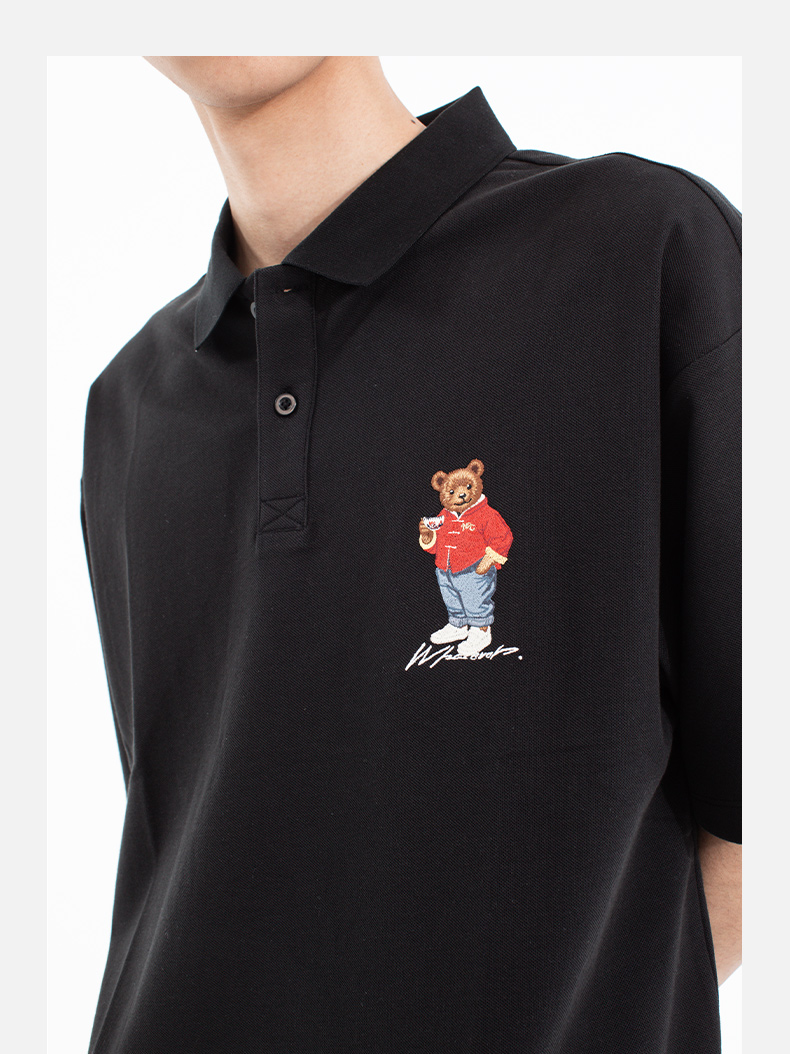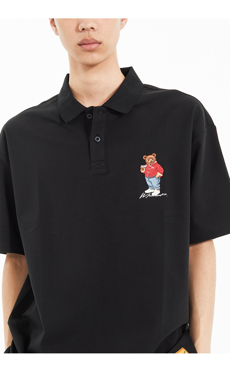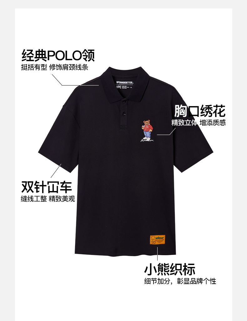 NPC潮牌喝茶熊刺绣logo【珠地网眼索罗娜】polo衫男舒适NP52TE21