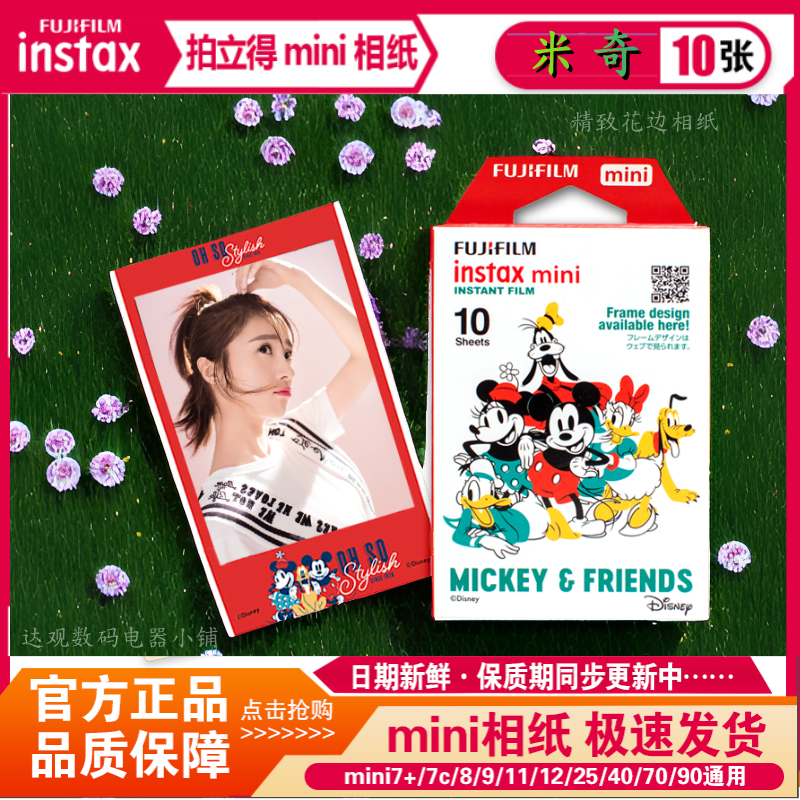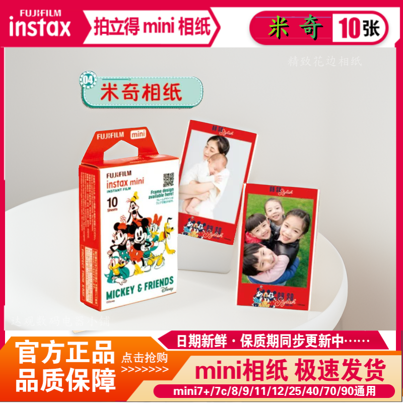 mini米奇3寸相纸1盒10张,多盒便宜,日期新鲜,现货速发,富士所有mini系列相机通用