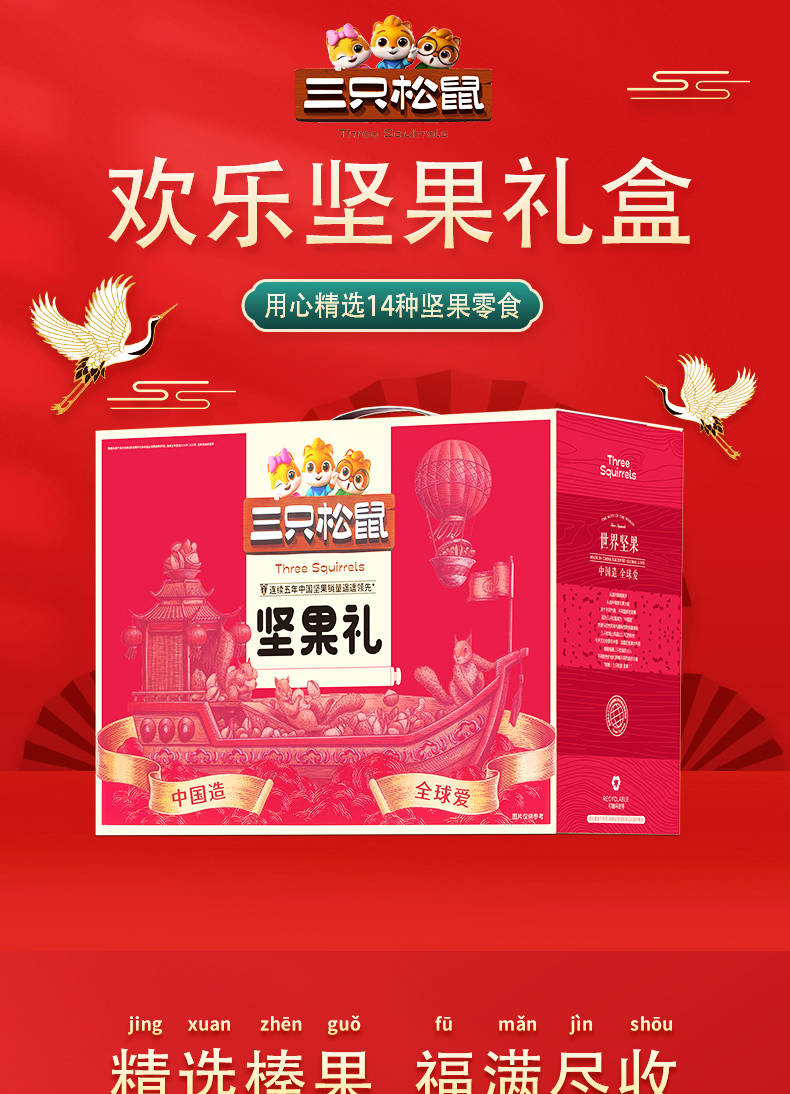 三只松鼠欢乐坚果零食礼盒2046g&禾煜寻味南北干货礼盒820g组合