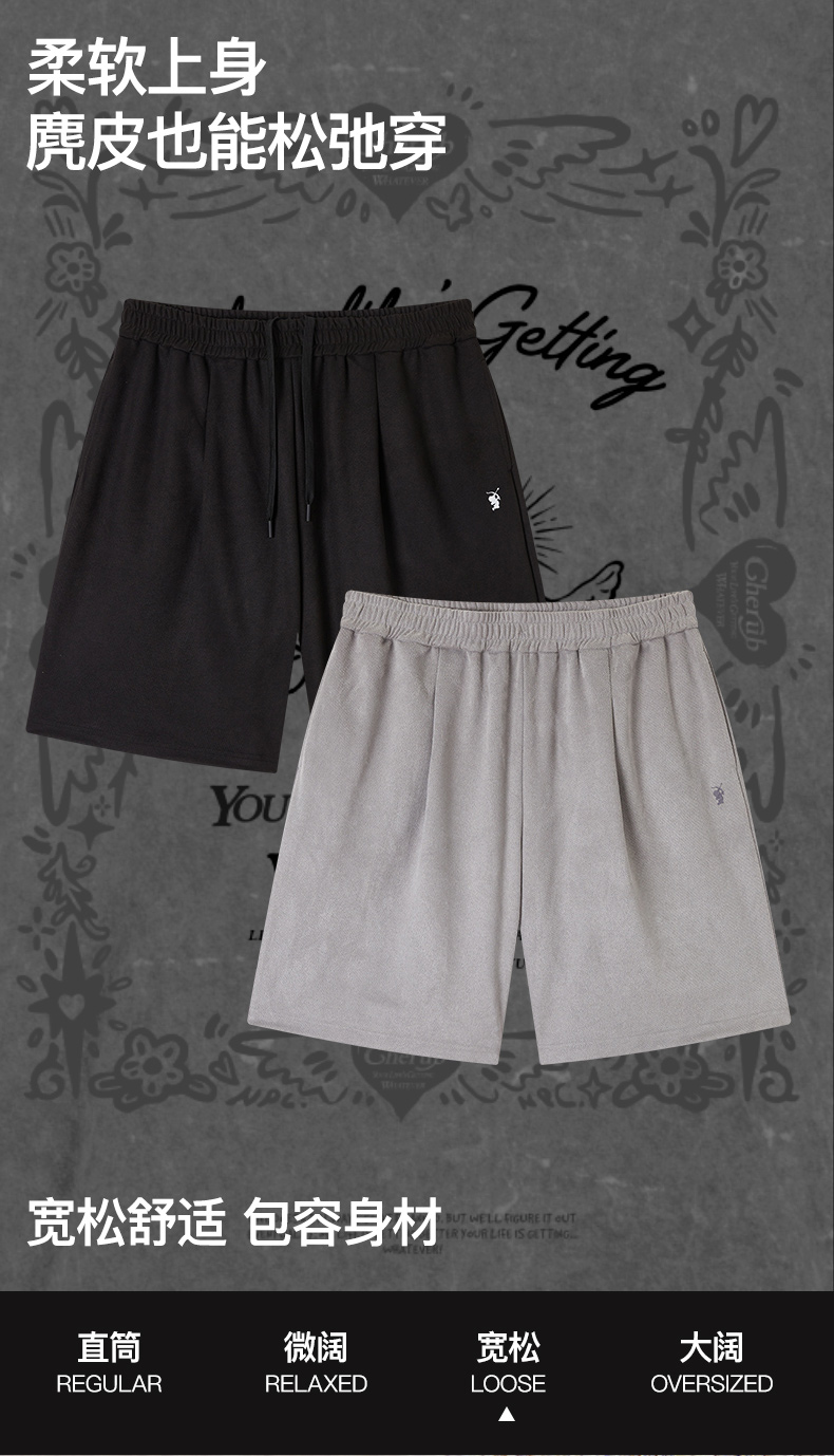 NPC潮牌口袋撞色刺绣小标垂感休闲短裤男宽松松紧腰透气NP54SR25