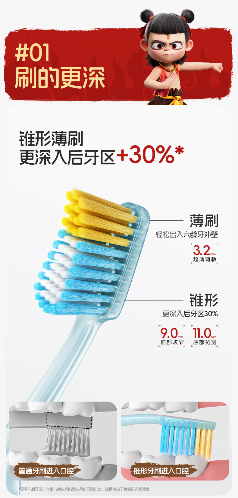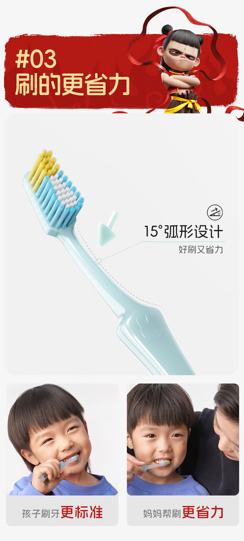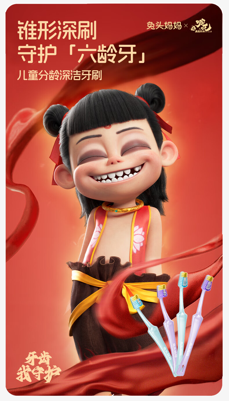 兔头妈妈【哪吒】儿童分龄深度清洁牙刷 3-6岁*2