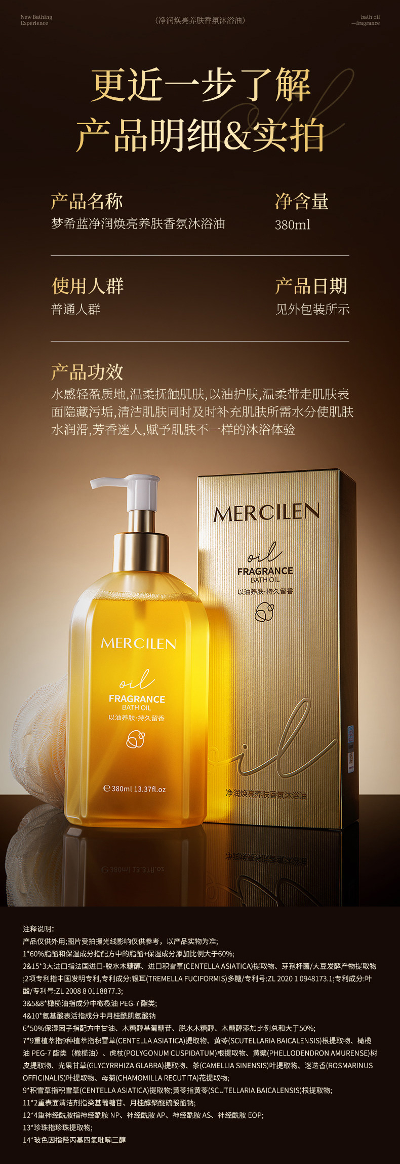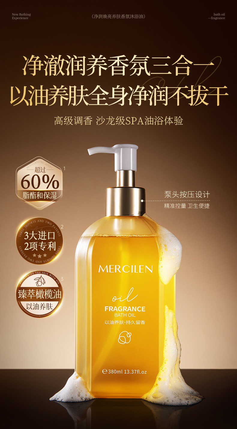 【两瓶装】‘洗澡就是护肤’十年国货MERCILEN养肤沐浴油;解决沐浴后皮肤干燥起皮问题!过敏包退!!