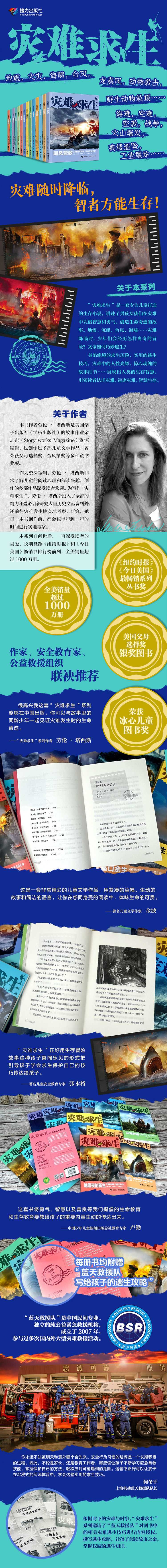 为写作“灾难求生儿童小说”,她投入了全部的精力和爱心,除研究大量历史文献资料外,还前往灾难发生地实地考察、研究。本系列自问世后,一直深受读者的喜爱,长期高居《纽约时报》和《今日美国》畅销书排行榜。精彩书评“灾难求生”是一套精彩