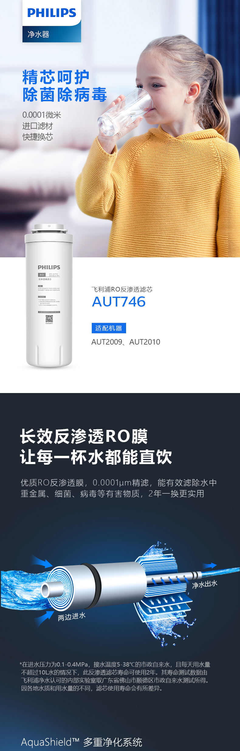 飞利浦(PHILIPS)厨下净水器滤芯AUT746(RO) 适用:AUT2009 /AUT2010 厨下净水器滤芯AUT746-2B 适用:AUT2011