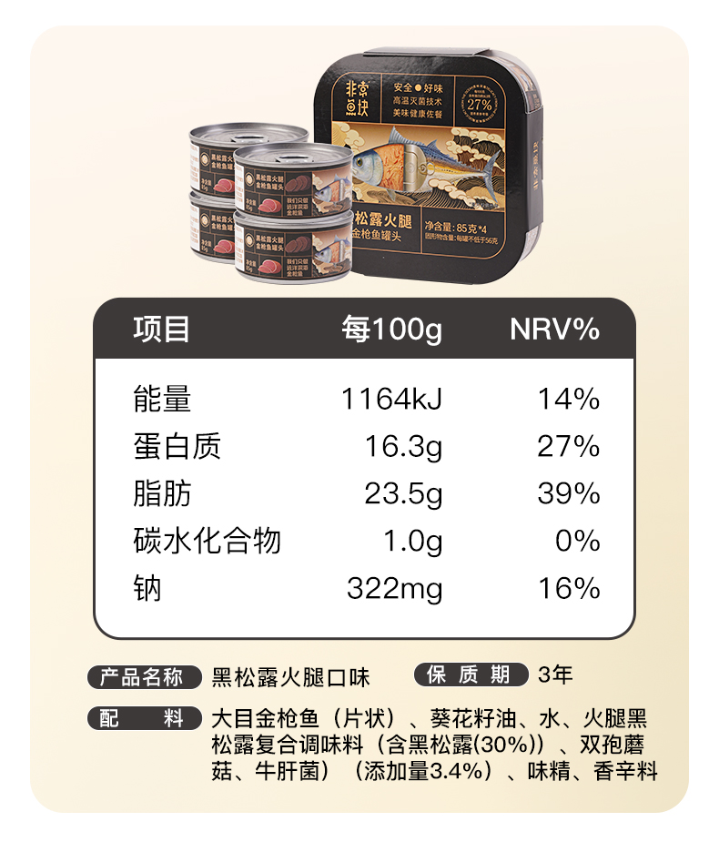 非常鱼块金枪鱼罐头黑松露火腿口味深海鱼即食85g*4罐拌饭营养