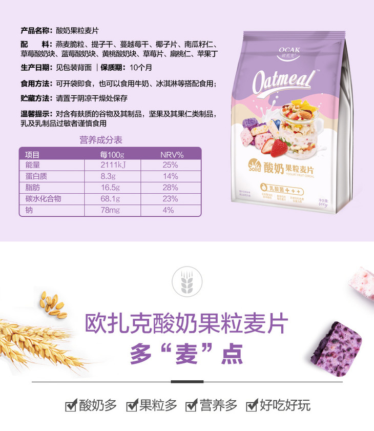 【1袋|网红麦片】欧扎克 水果坚果混合燕麦片1袋(多种口味可选)
