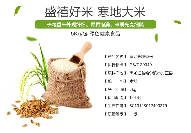 【橙象优选】方正县盛禧大米 寒地长粒香米5kg装