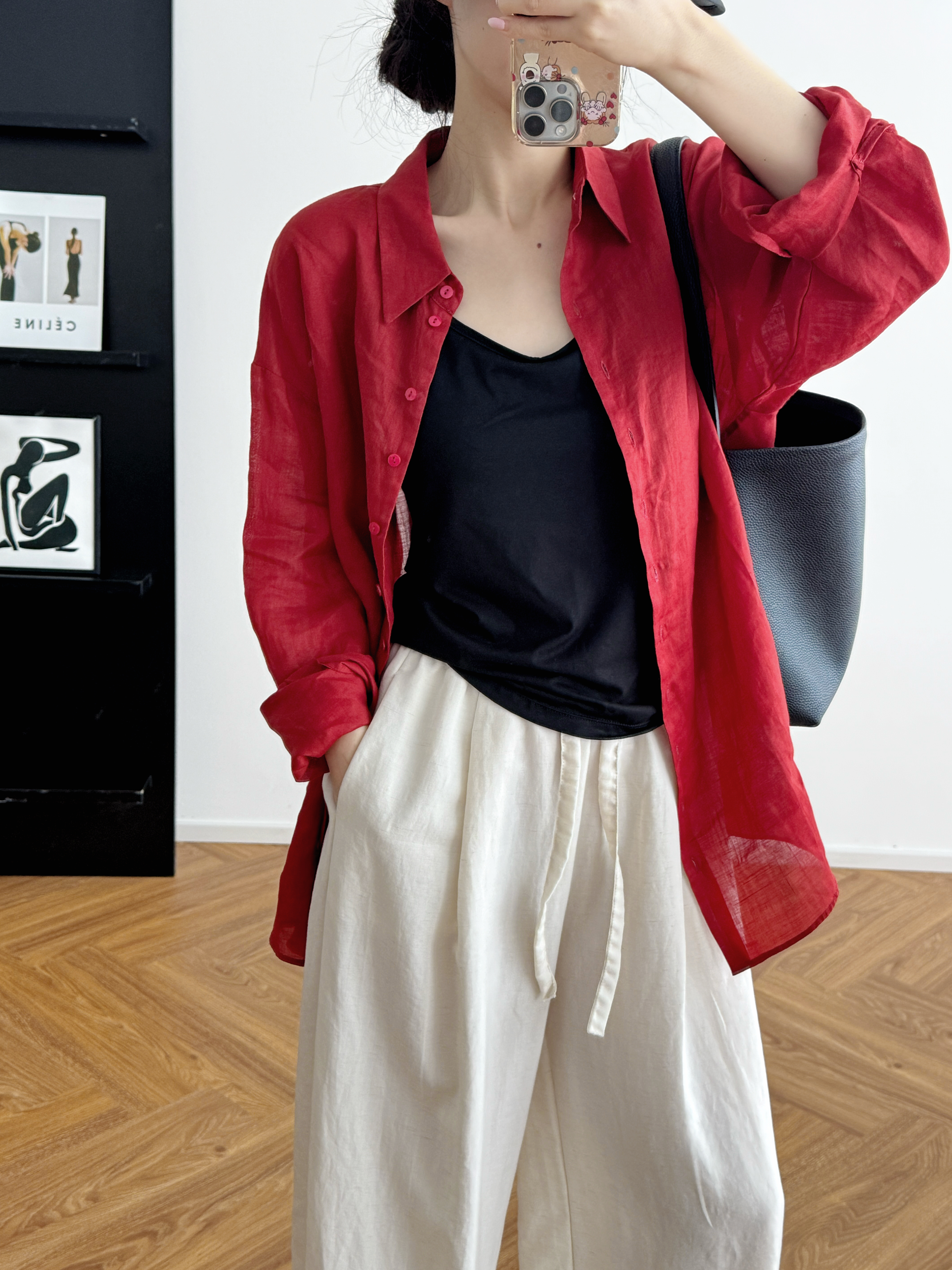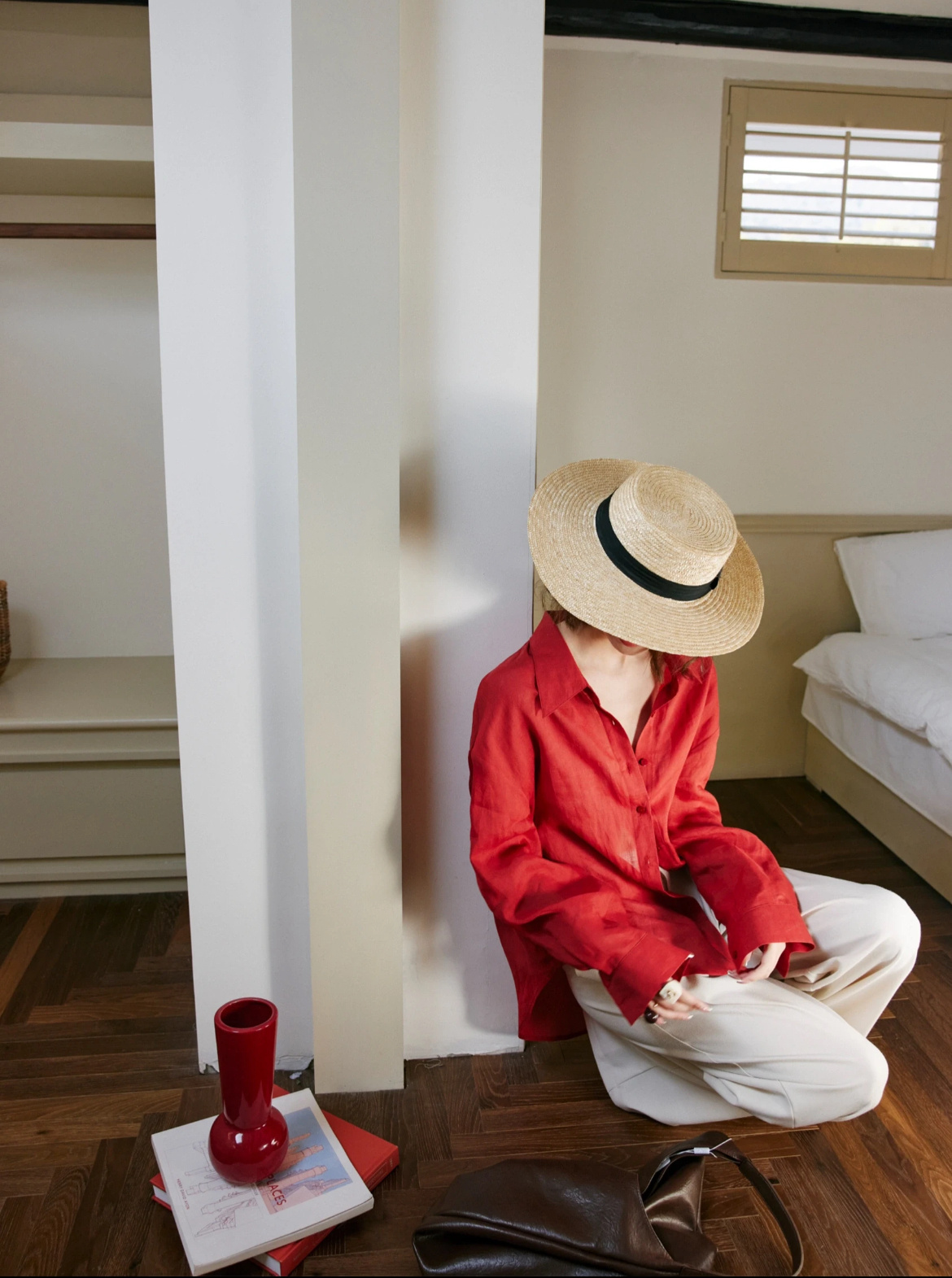 亚麻棉混纺,自带呼吸透气感,抑菌防晒,质感细腻,柔软亲肤不失筋骨。