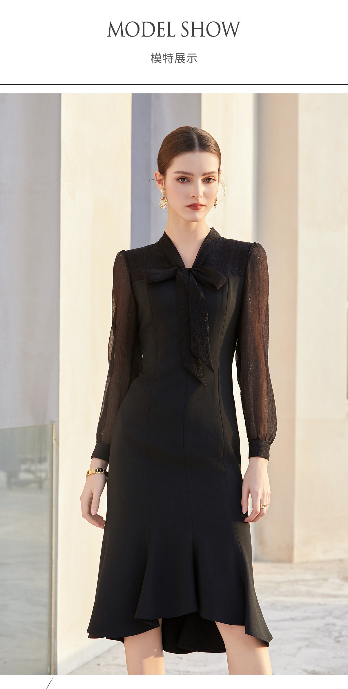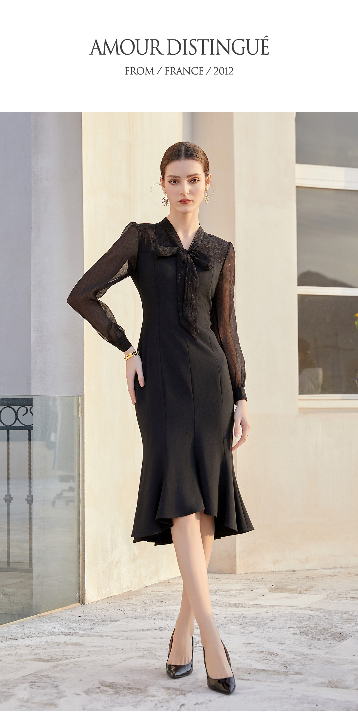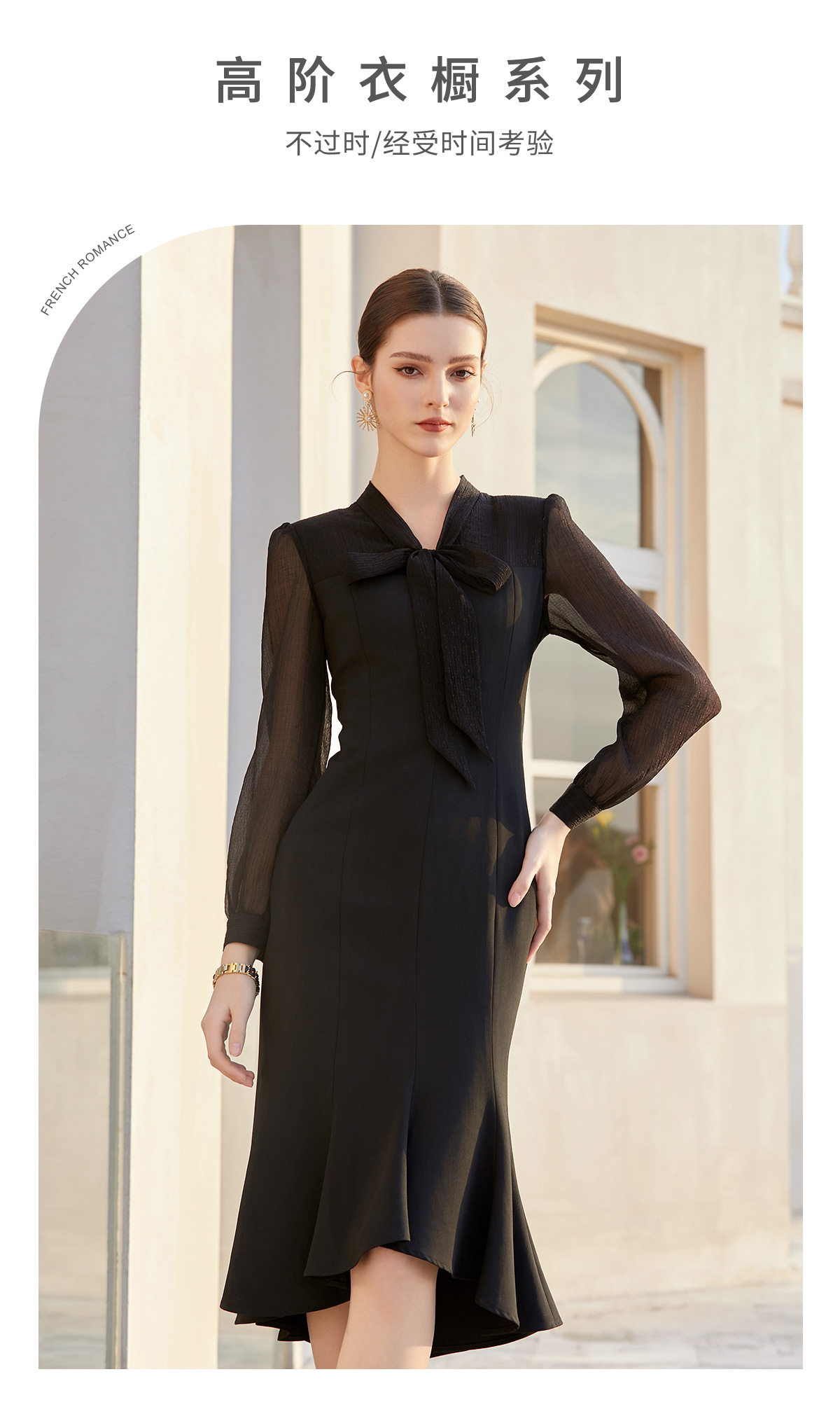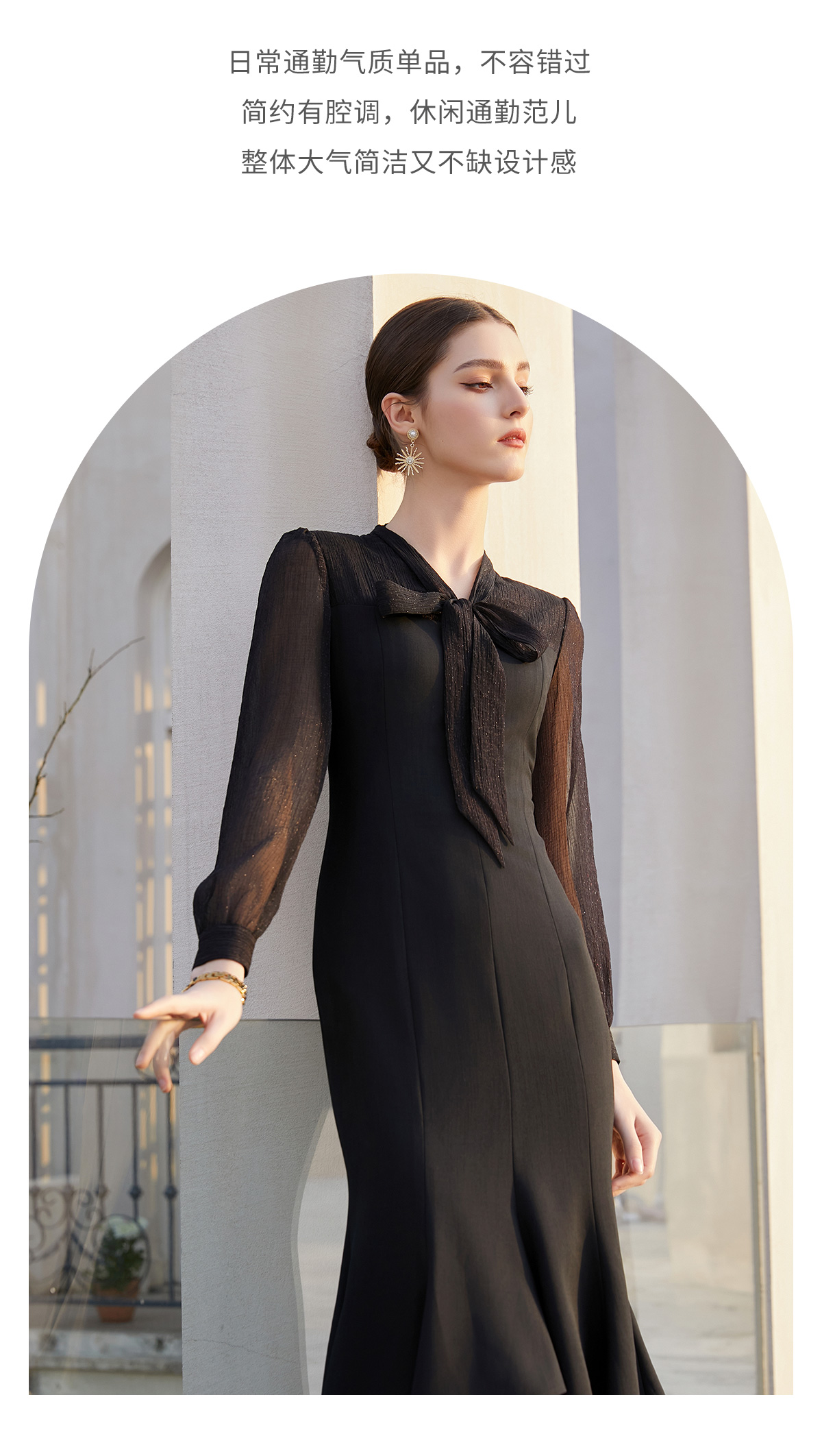 AD法式轻奢复古感连衣裙女夏季知性女神范包臀鱼尾裙赫本风小黑裙