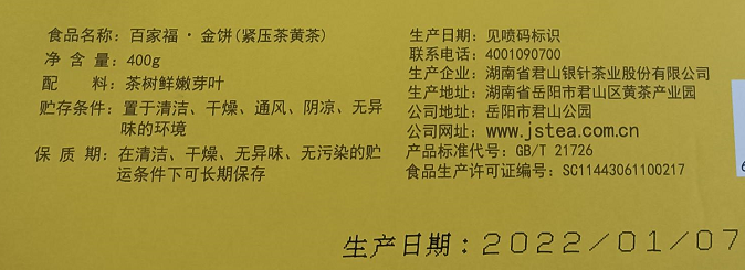 君山丨百家福 黄金饼 紧压黄茶 一级 醇和柔滑 礼盒装 400g