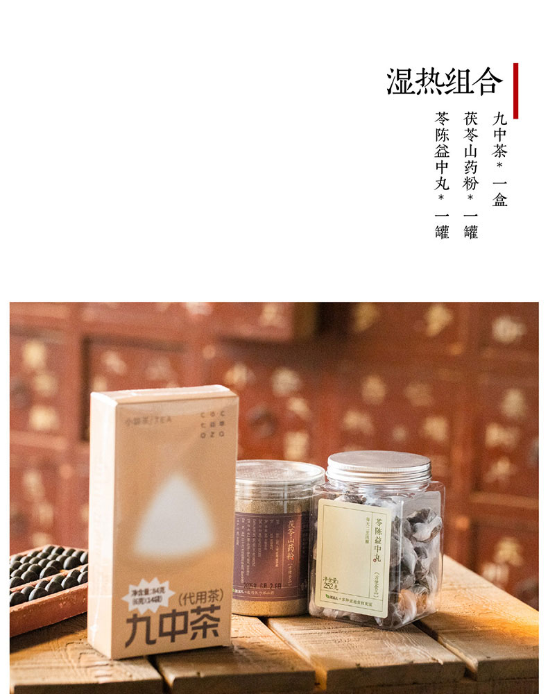 *自营*湿热组合 | 共3件轻湿好物,原价185.1组合价156九中茶x1苓陈益中丸x1茯苓山药粉x1