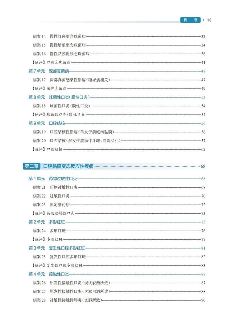 4.内容全面系统,图文并茂,病案+视频 通过逐例展示各类型口腔黏膜病病例的病损图片,如实反映其特征性临床表现;通过完整介绍各病例的病史、专科检查、诊断、治疗等情况,再现各病例的诊治过程和特点,让读者最大限度切实体验口腔黏膜病的诊治过程;通过介绍各病例的诊断依据,以及对各类口腔黏膜病的最新研究进展进行述评,并在述评中展示更多的典型病损图片,使读者更好地掌握口腔黏膜病知识。