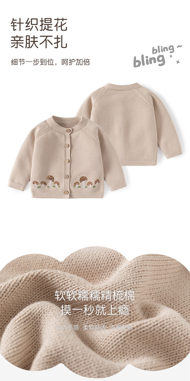 蘑菇朵朵韩版婴儿开衫毛衣A类秋冬纯棉针织宝宝毛衣开衫儿童外套