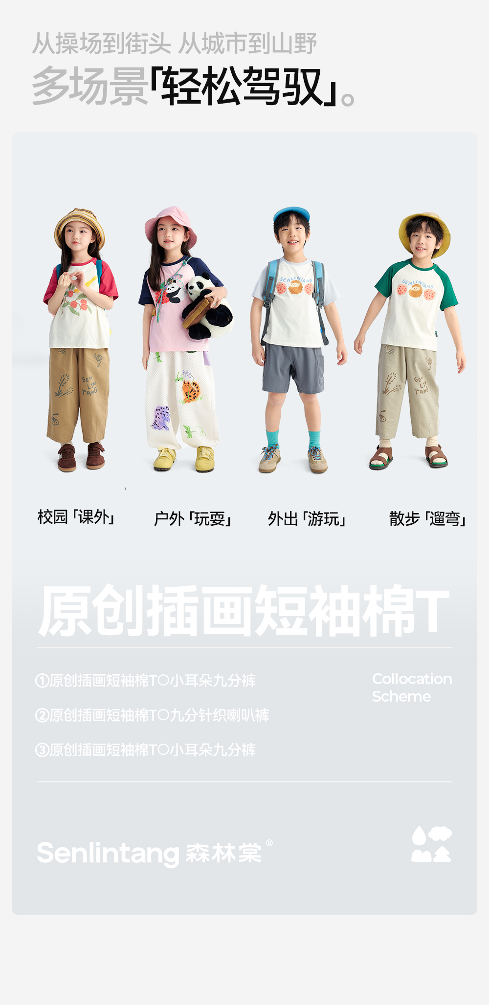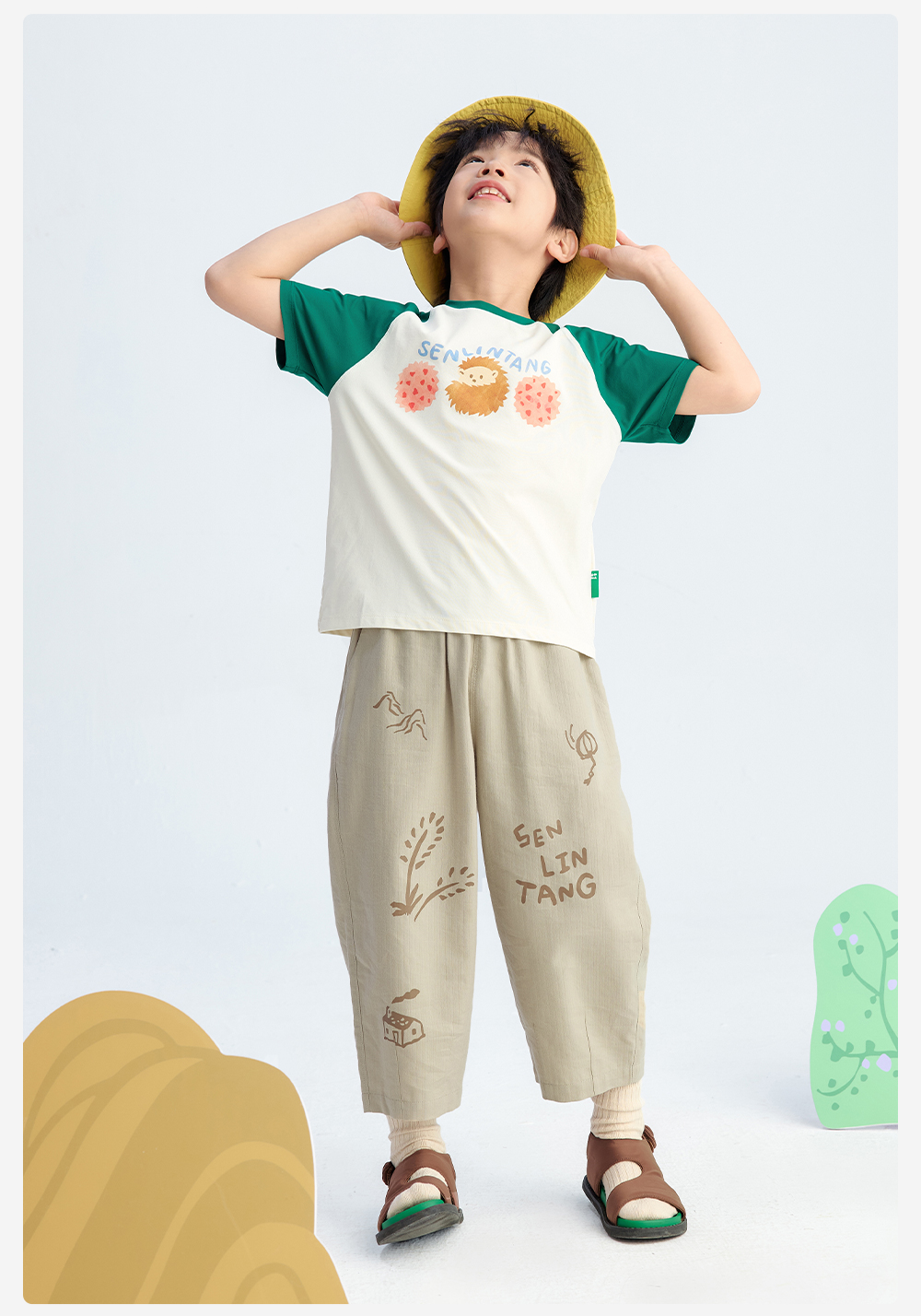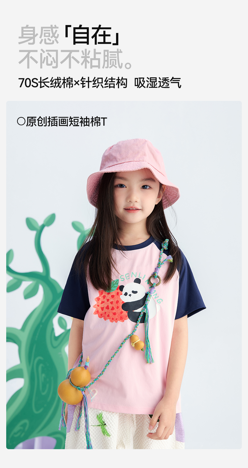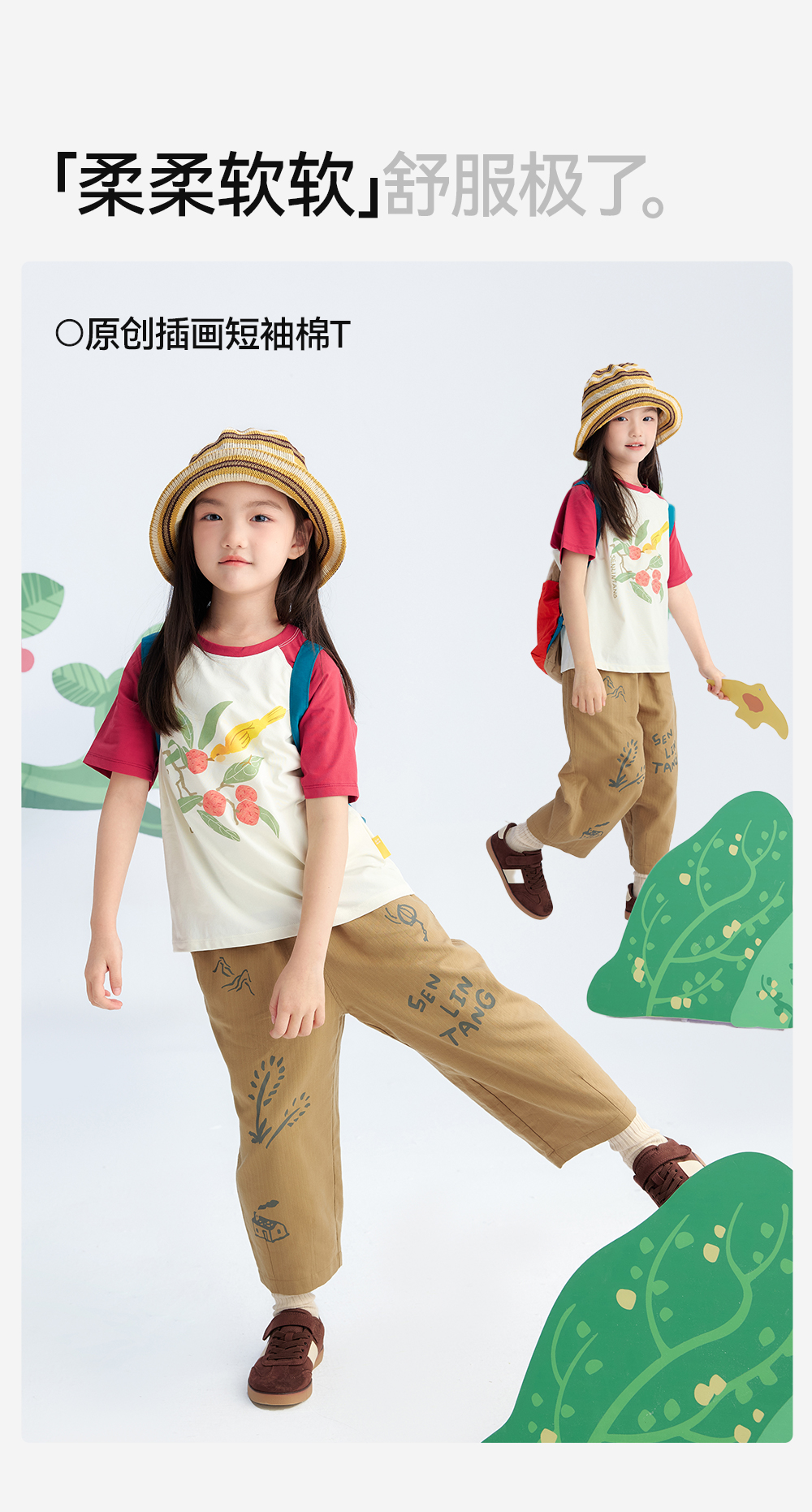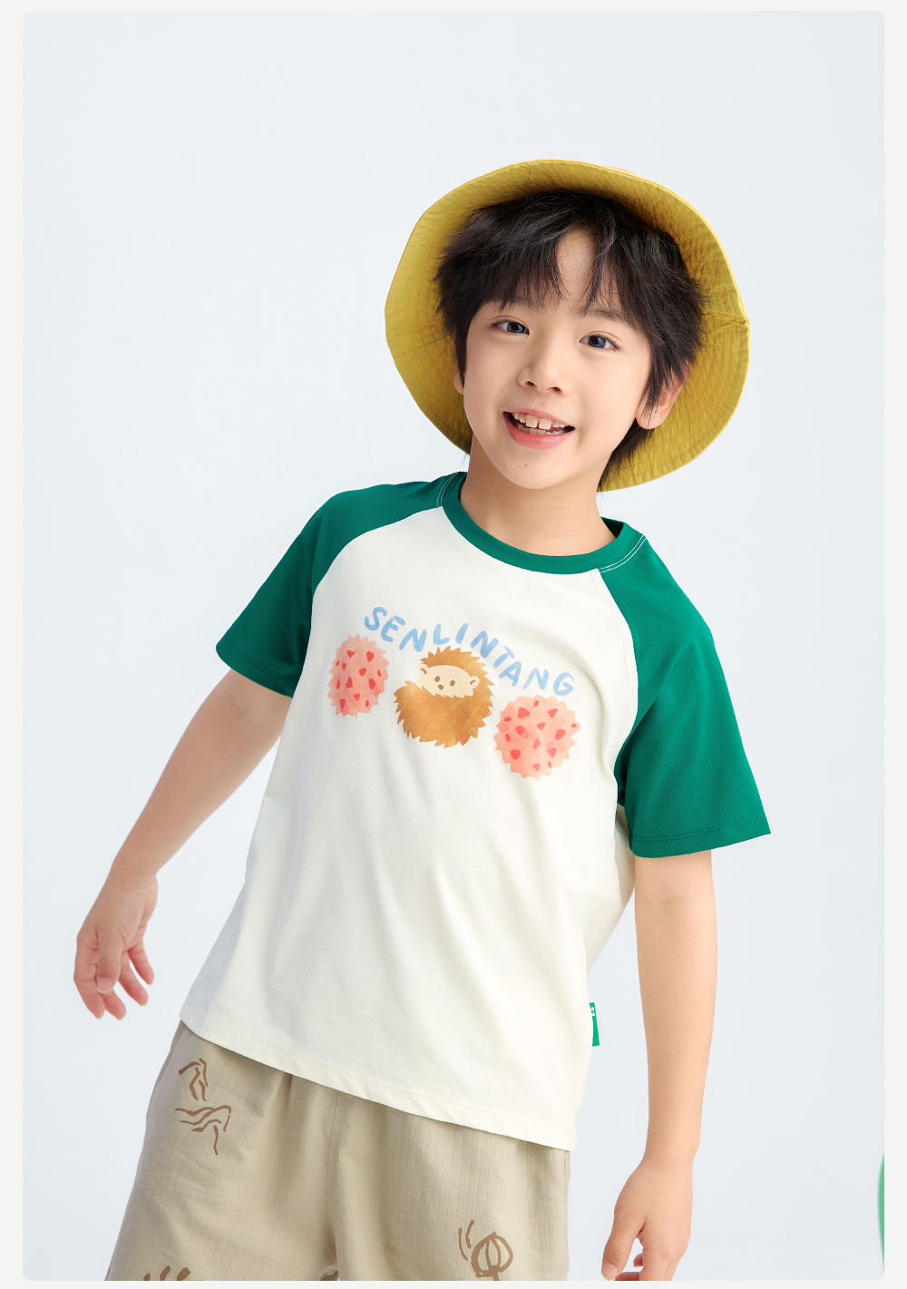 【原创插画短袖】森林棠26夏款柔软吸湿中小童撞色插肩袖圆领T恤40162443