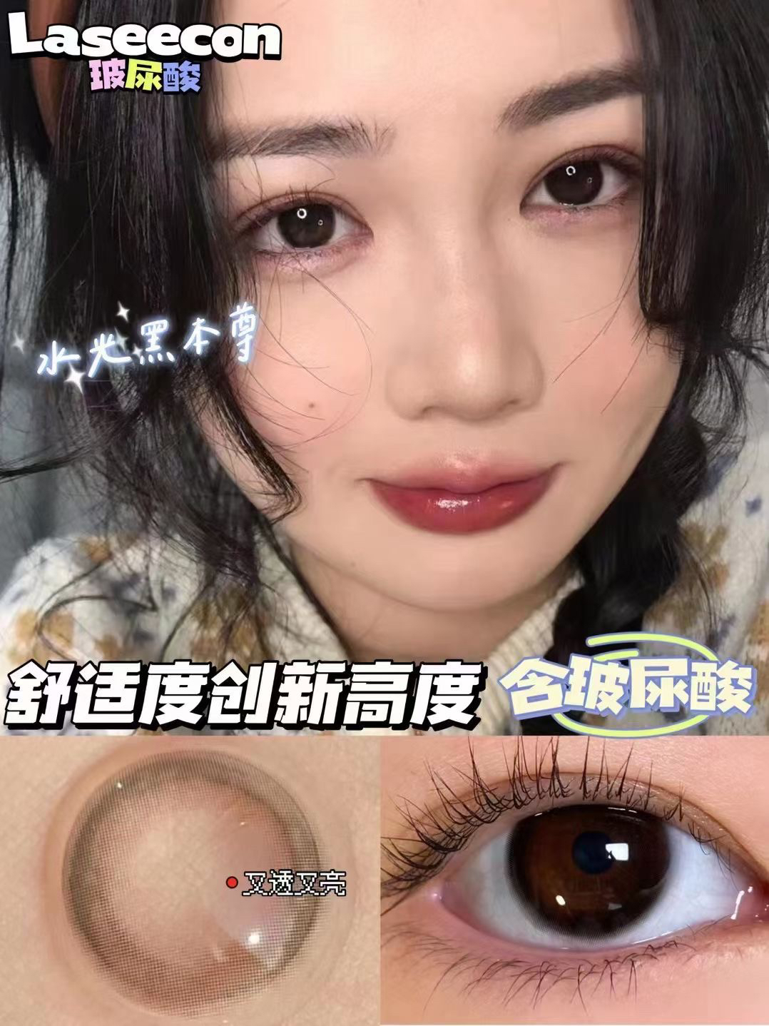 laseecon 持证玻尿酸“艺考眼3.0”来袭 咕噜黑/小奶泥 染色直径13.2mm 水润度舒适度全面升级 年抛