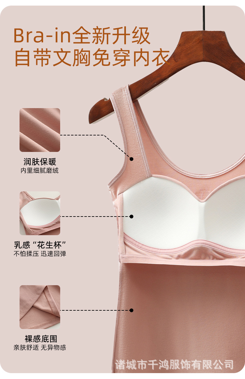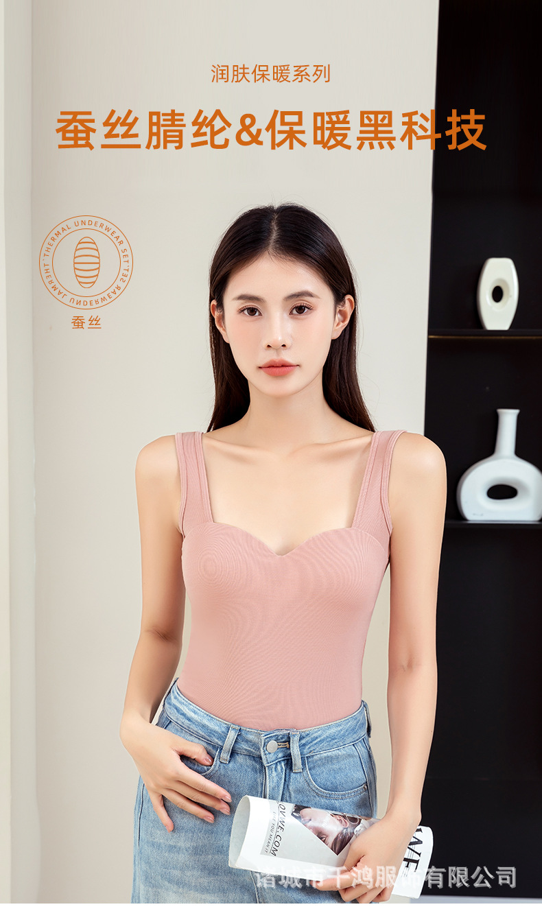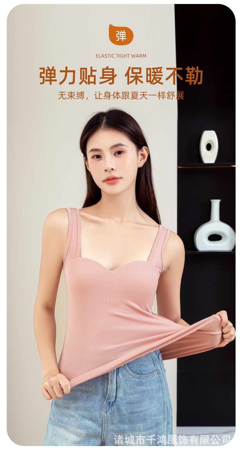 【保暖黑科技!蚕丝腈纶带胸垫背心】锁暖蓄热跟保暖,加厚舒适磨毛工艺,轻盈有型,拒绝囊肿,保暖舒适体验,带胸垫加绒加厚保暖居家服L