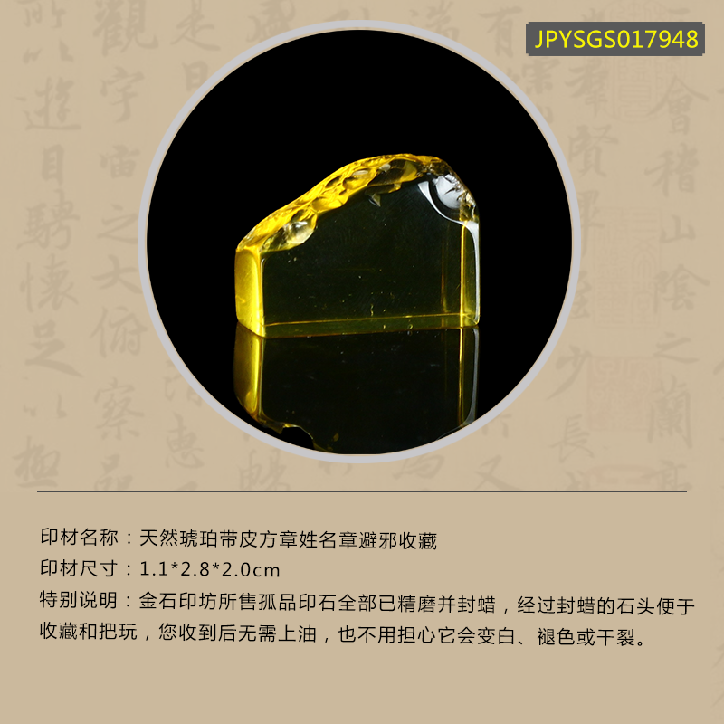 孤品17948天然琥珀带皮方章姓名章避邪收藏2.8*1.2*2.0cm