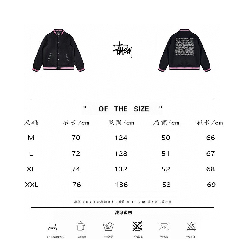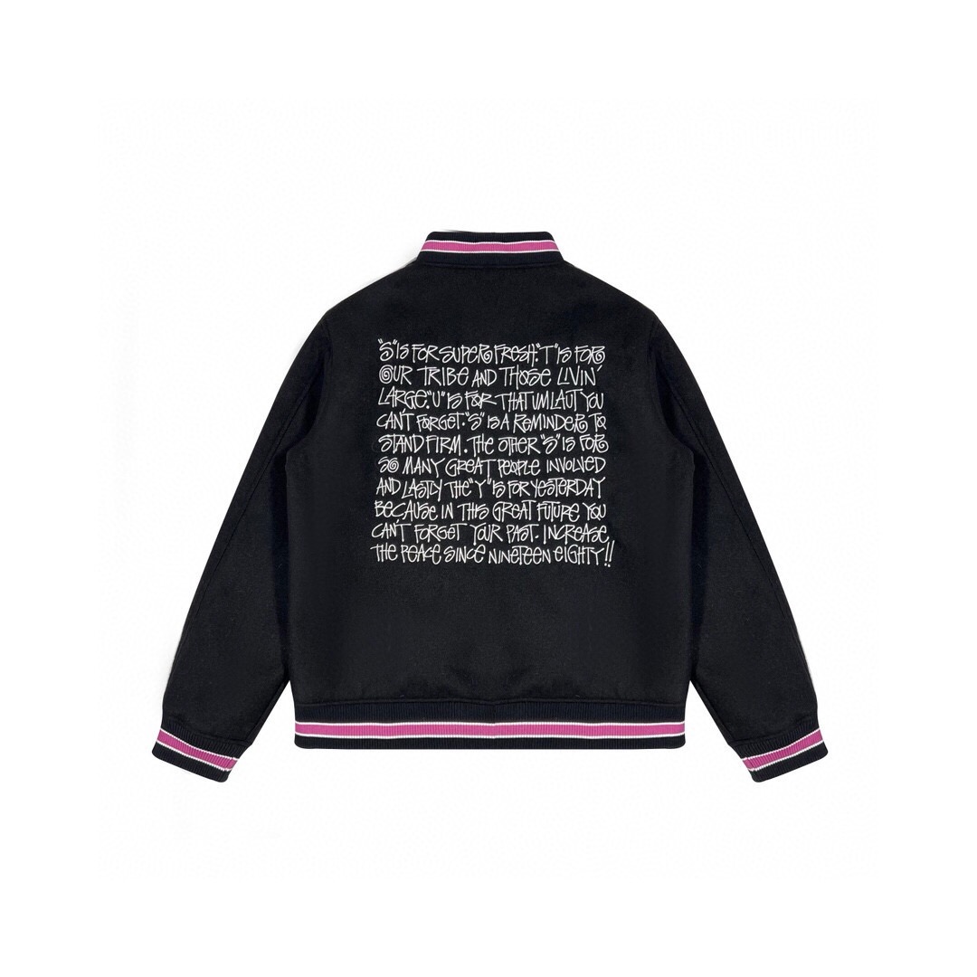 STUSSY新款背后刺绣标语棒服球外套