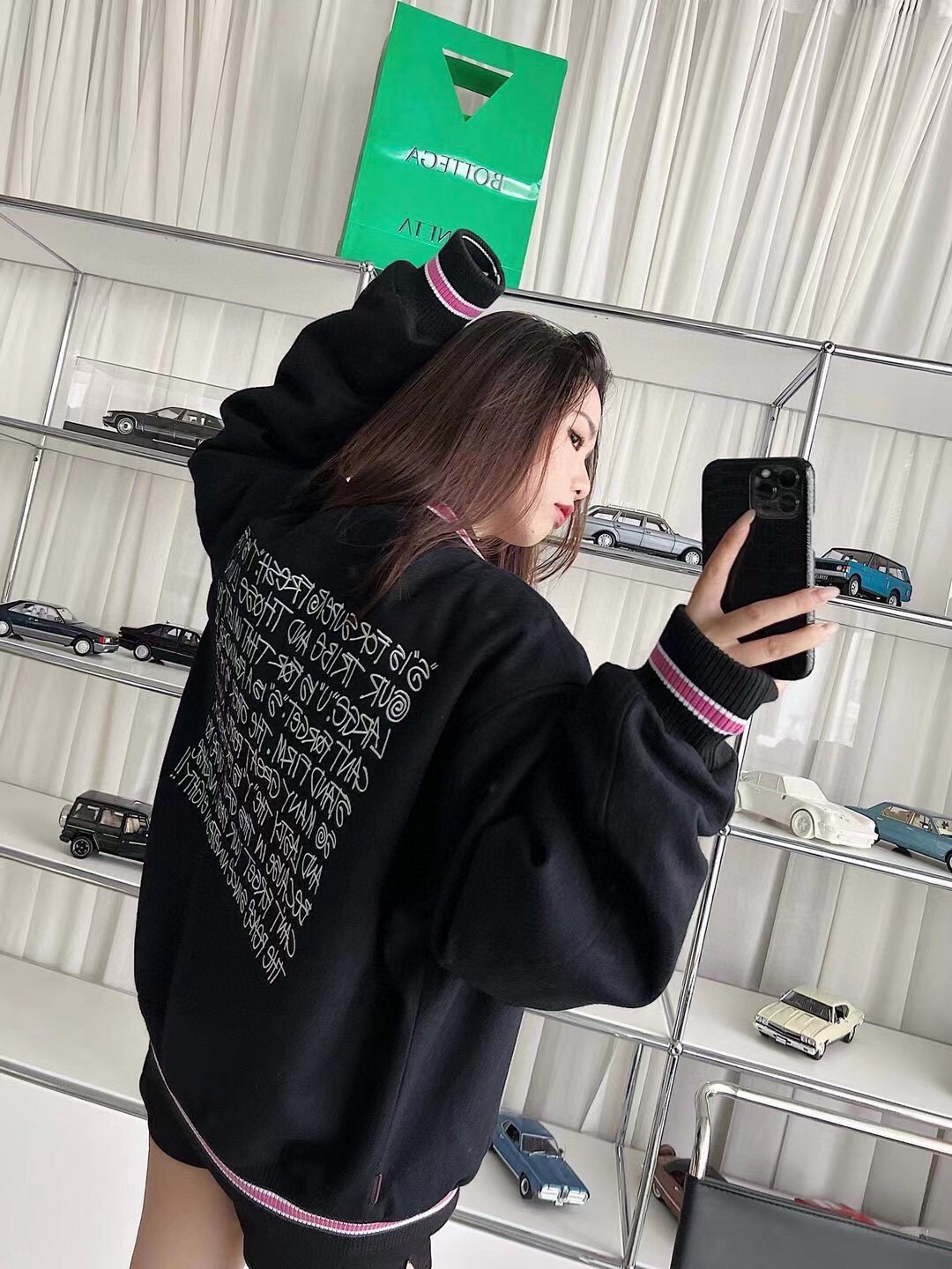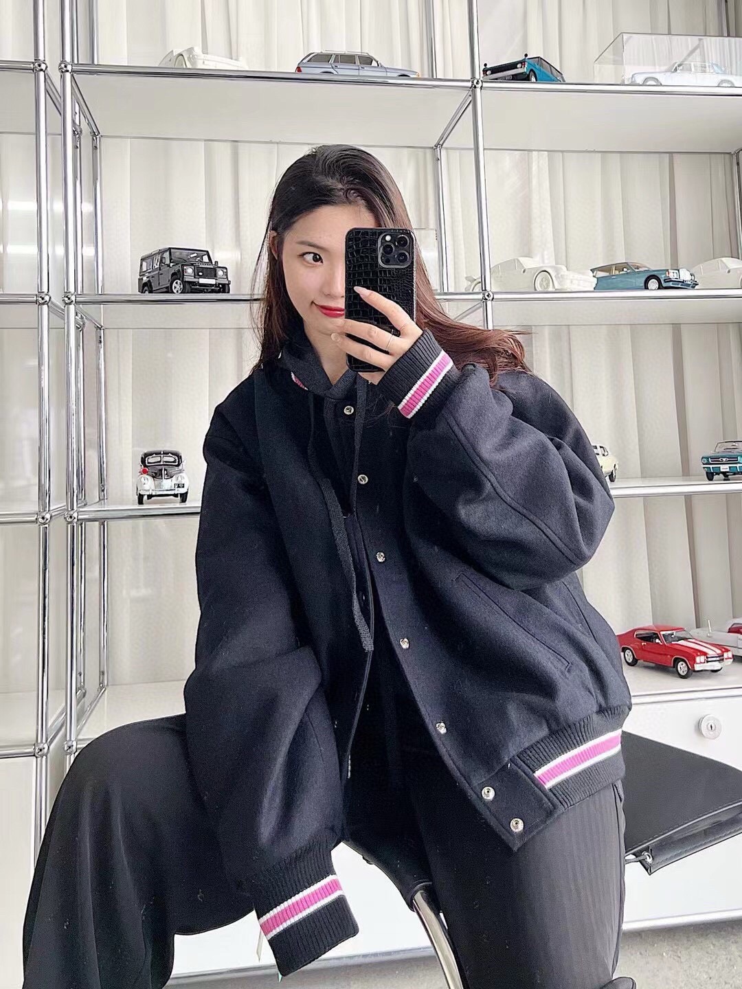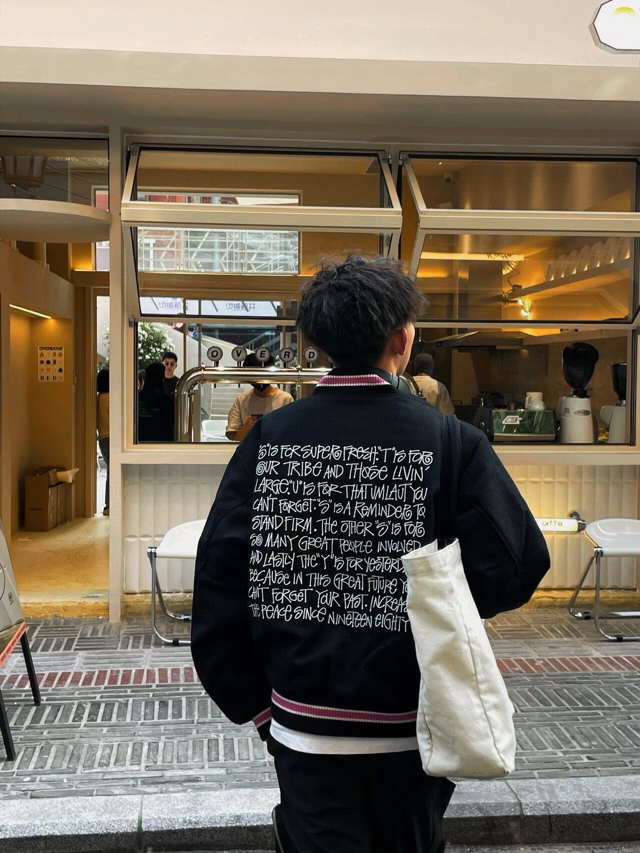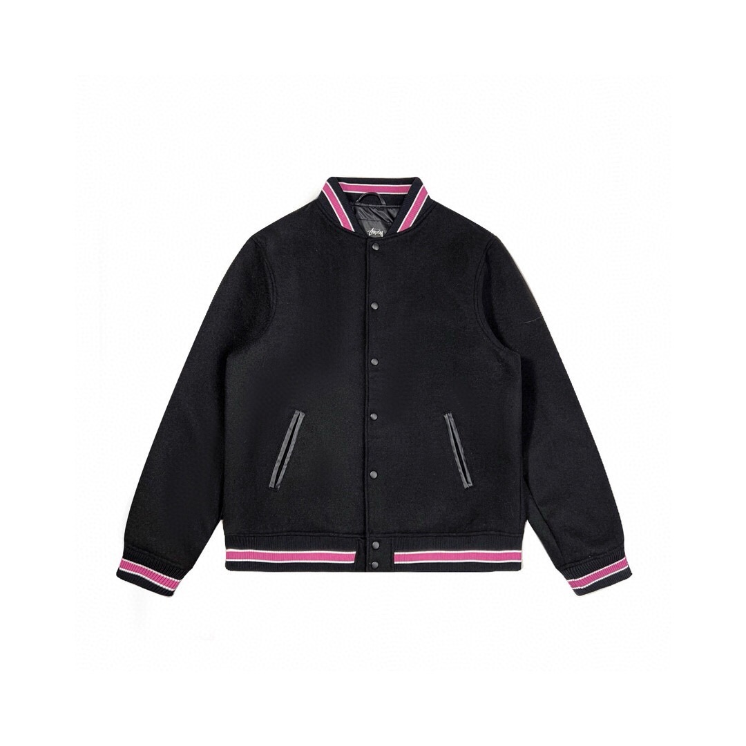 宽松的街头棒球衫剪裁,呢料的大身,已经拥有诱人的街头潮流气息,有型有温度;正面黑色简洁,在衣服领口、袖口和下摆上的螺纹中镶嵌了白边的粉色条点缀,给硬朗的腔调中融入了软糯的一面,后背是属于stussy的文化,也是衣服的重头戏,满背的字母都是stussy专属的字体,是潮流圈带有辨识度的视觉符号,刺绣工艺书写了stussy每个字母的由来,表达了stussy品牌文化的初衷。