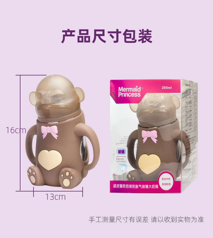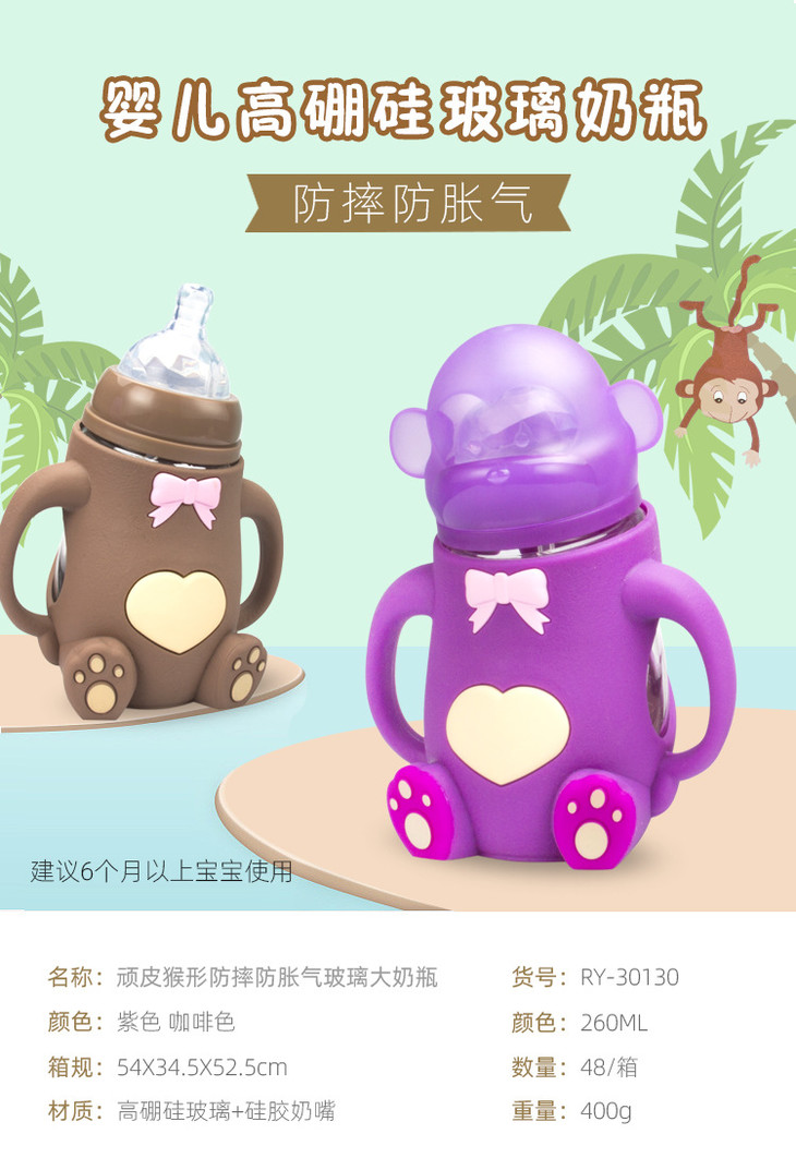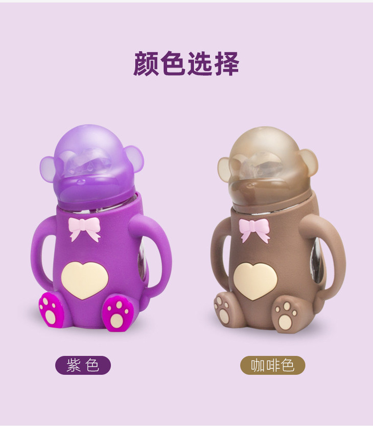 【母婴】* 宽口创意硅胶猴子造型婴儿奶瓶 宝宝防摔防胀气喂养奶瓶