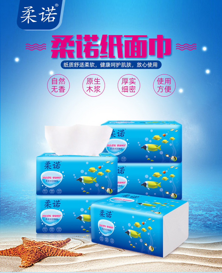 【抽纸】柔诺原木纸巾婴儿抽纸四层300张面巾纸餐巾纸家用卫生纸