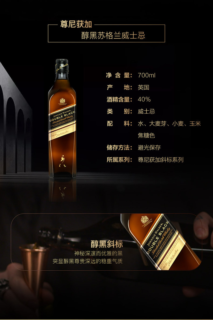 【行货】苏格兰尊尼获加 醇黑 调配威士忌 700ml*1瓶