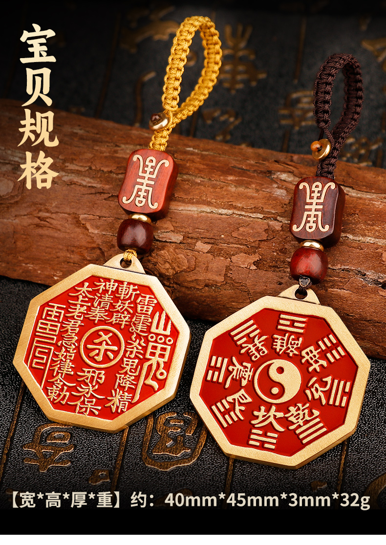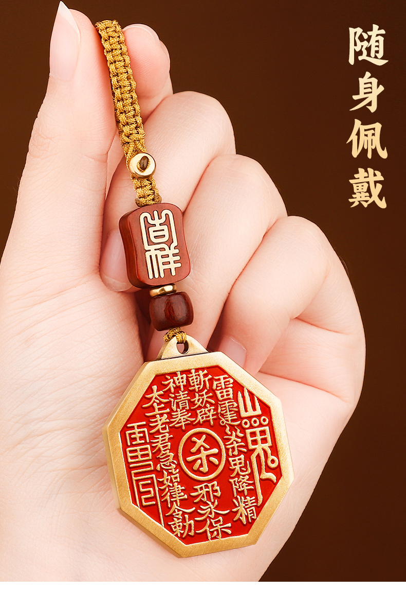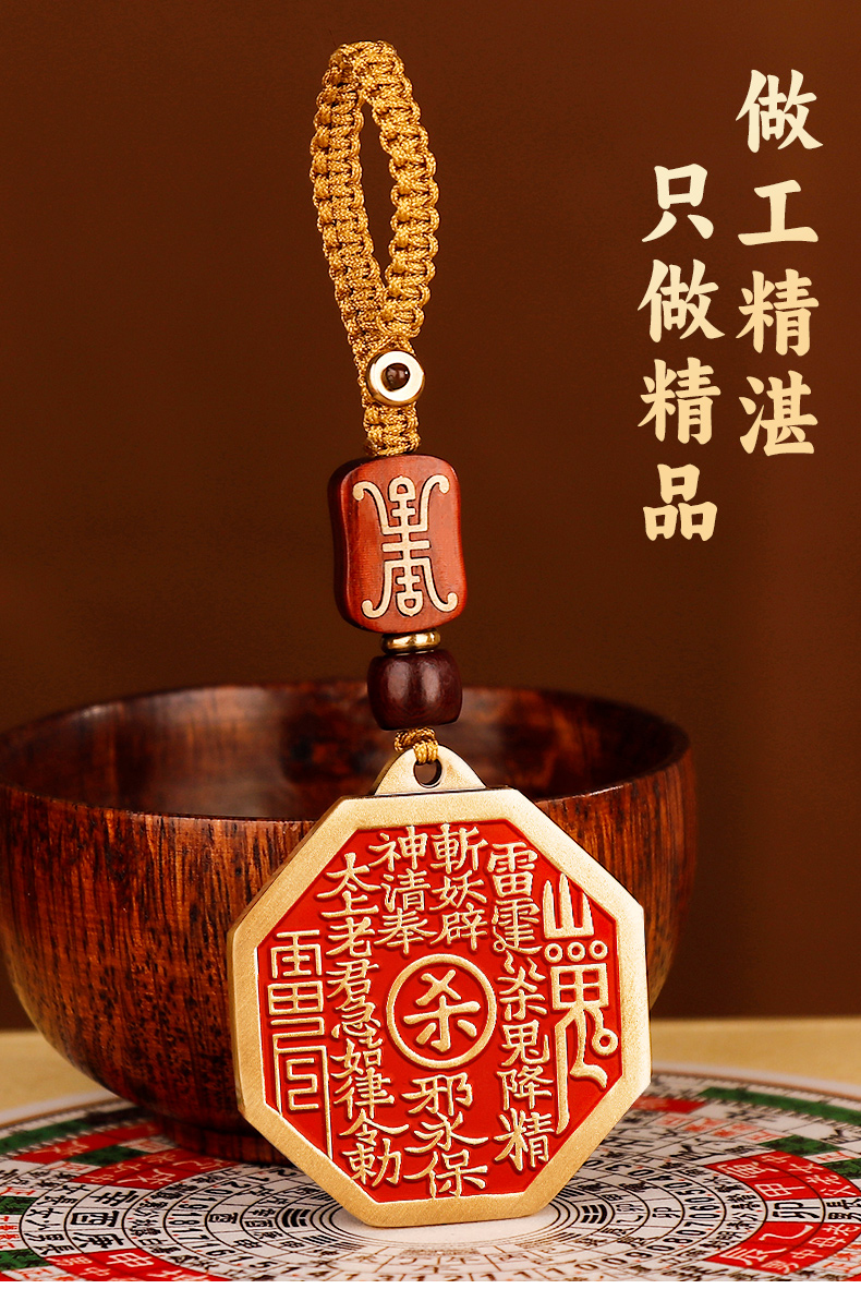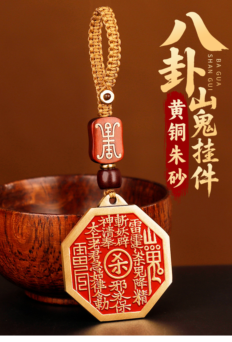 黄铜朱砂八卦山鬼挂件
