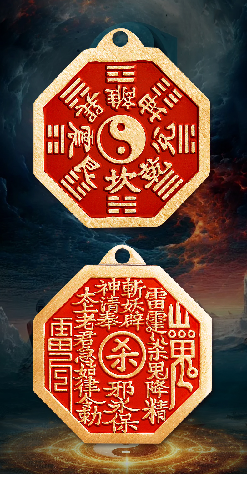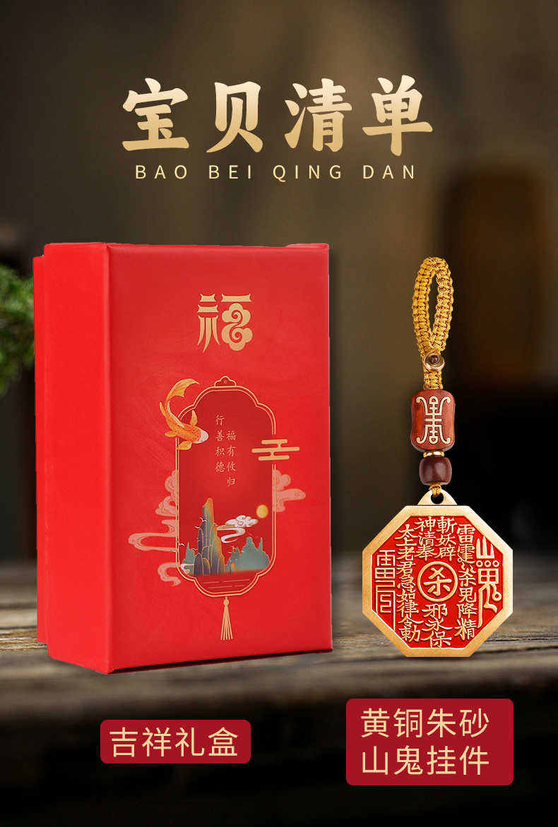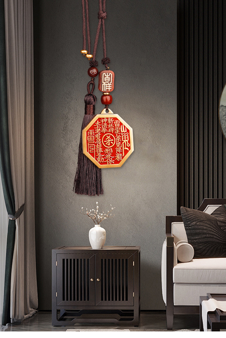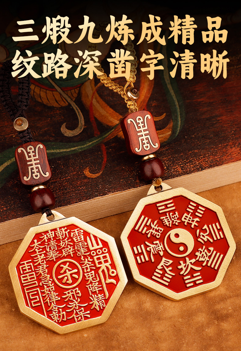 黄铜朱砂八卦山鬼挂件