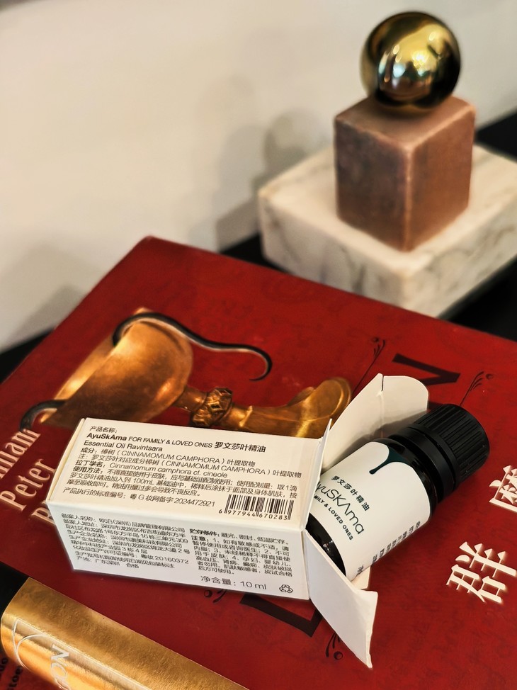 自制防护喷雾:用100ml的喷雾瓶(建议使用玻璃或金属材质),加入20滴罗文莎叶精油(可与其他如柠檬、薰衣草精油调和),其余加水制成约1%浓度的喷雾。可用于喷洒在室内空气、物品表面(请注意有些表面可能不宜喷洒)。