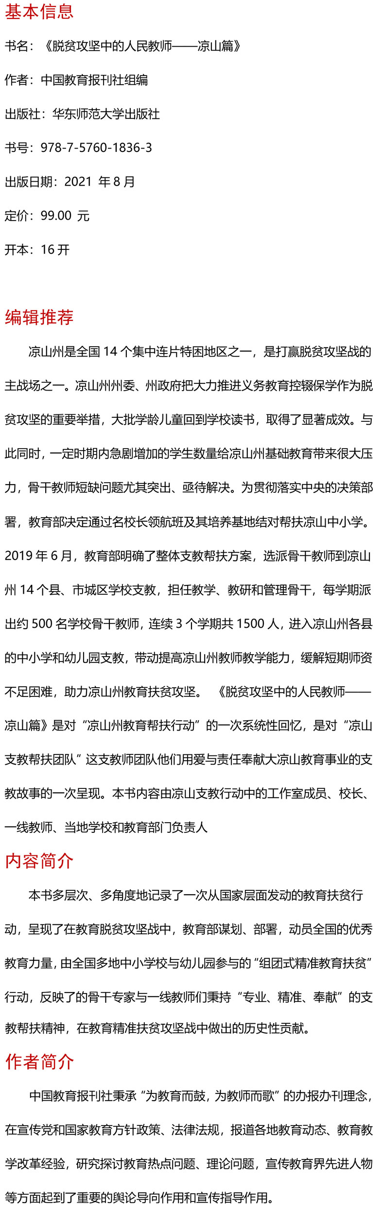 脱贫攻坚中的人民教师——凉山篇 为教育而鼓 为教师而歌 中国教育报刊社组编
