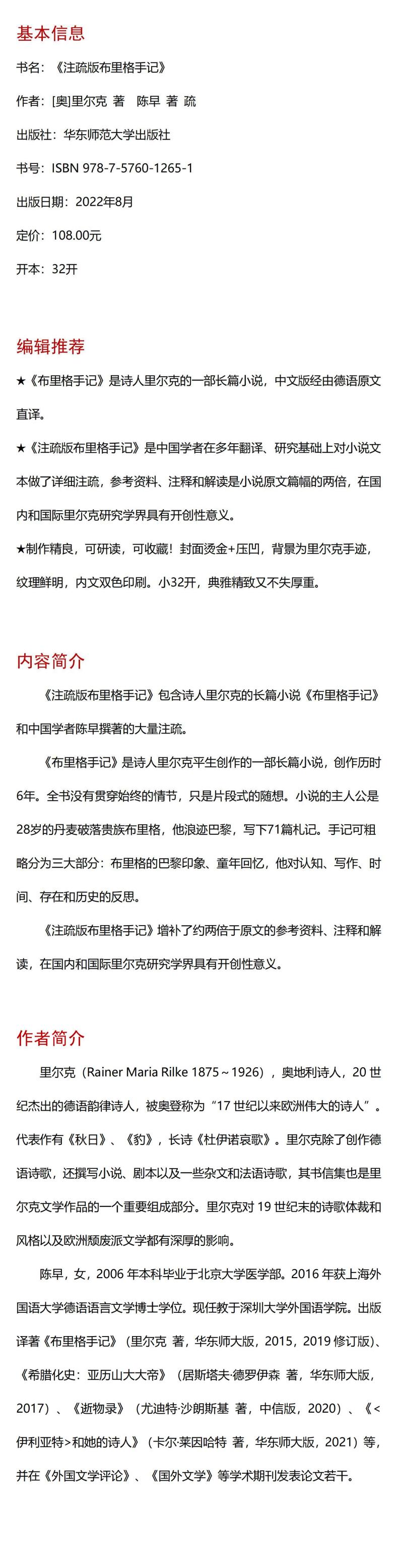 注疏版布里格手记 外国小说 六点图书 里尔克 著 陈早 著 疏