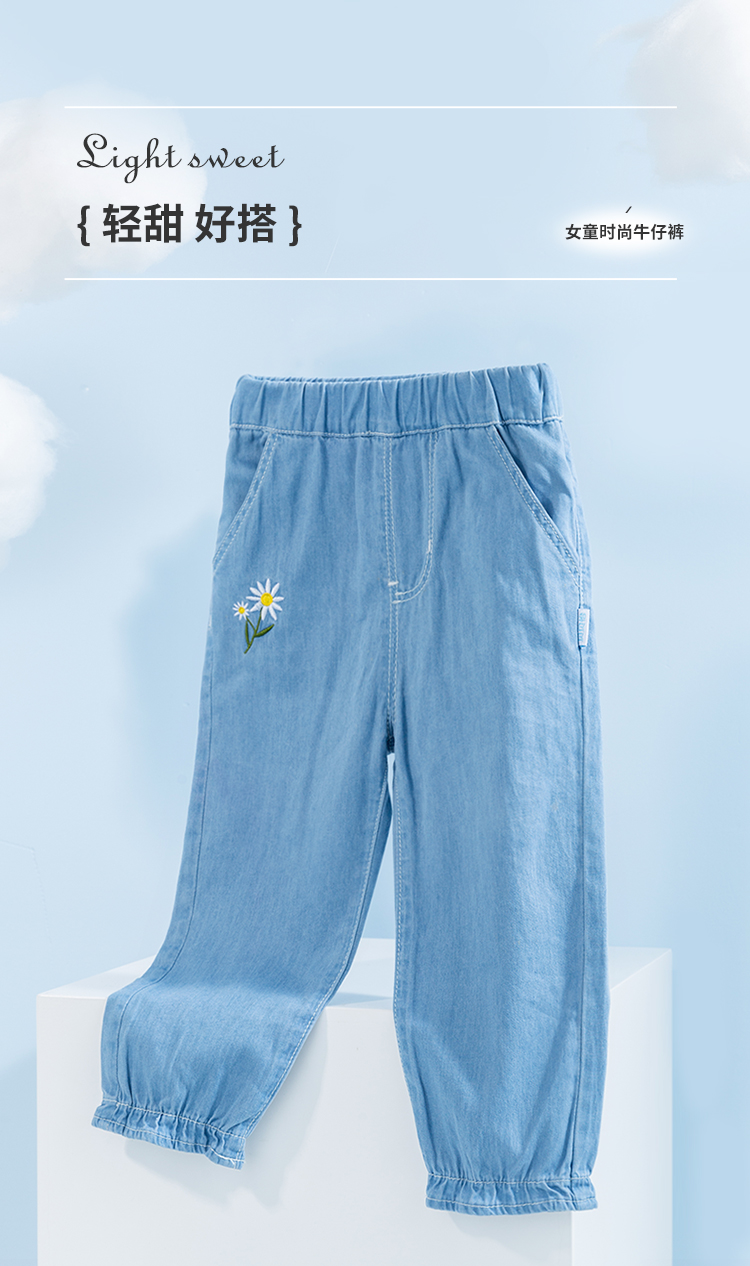 贝贝怡春夏新品婴儿裤子女童宝宝长裤小童裤宽松舒适女孩牛仔裤潮231K2466