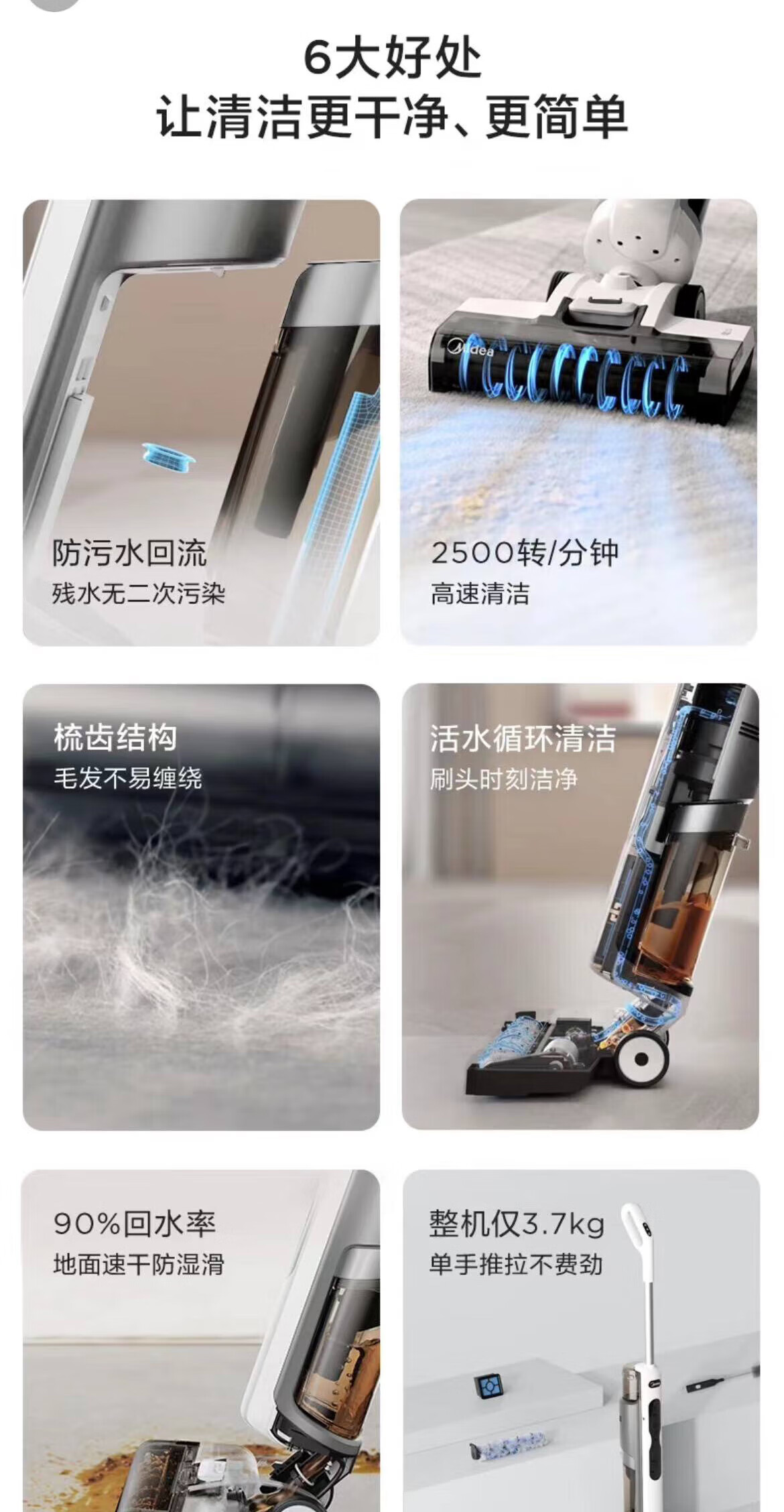 美的(Midea)无线家用智能洗地机吸洗扫拖一体机