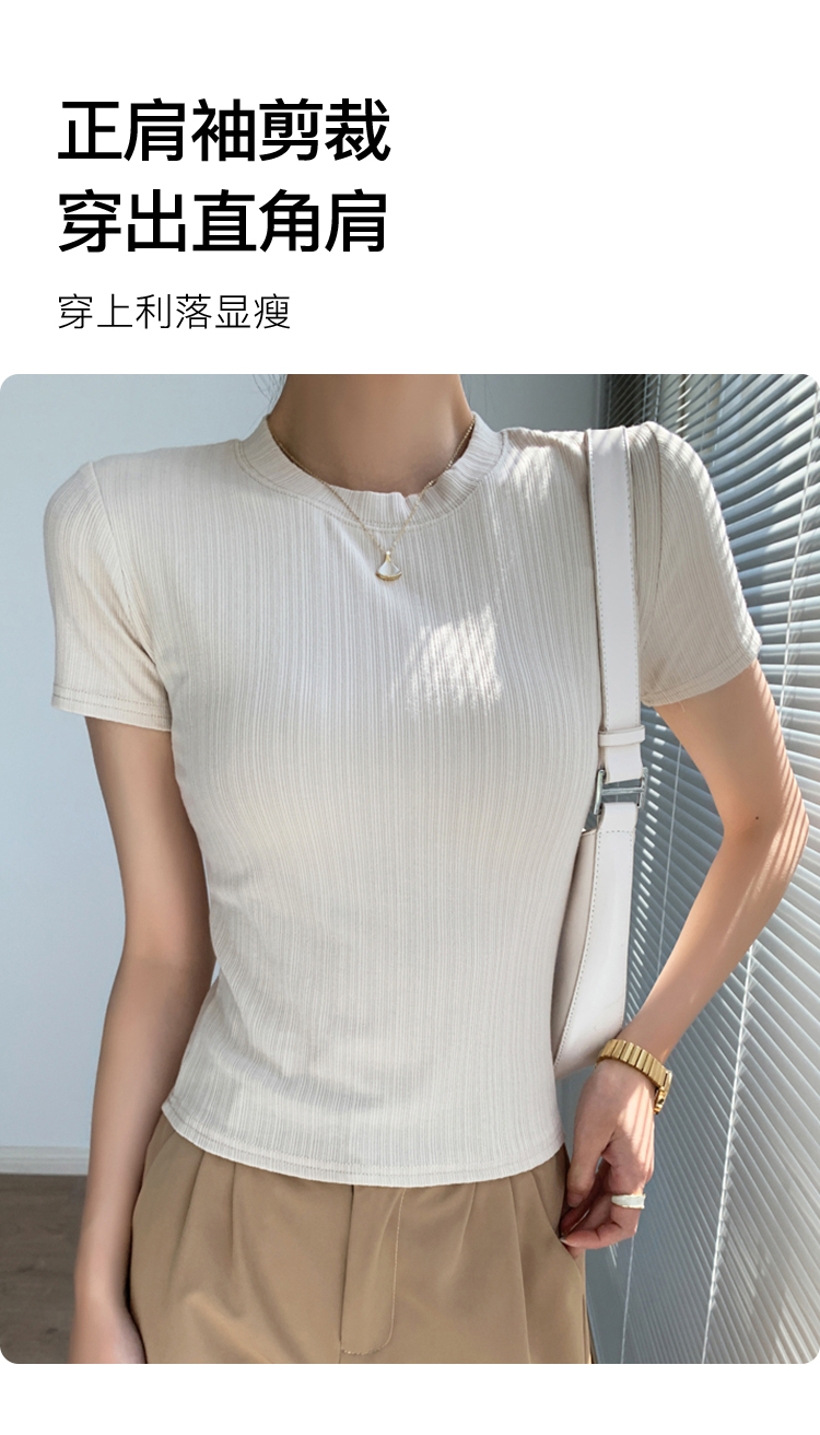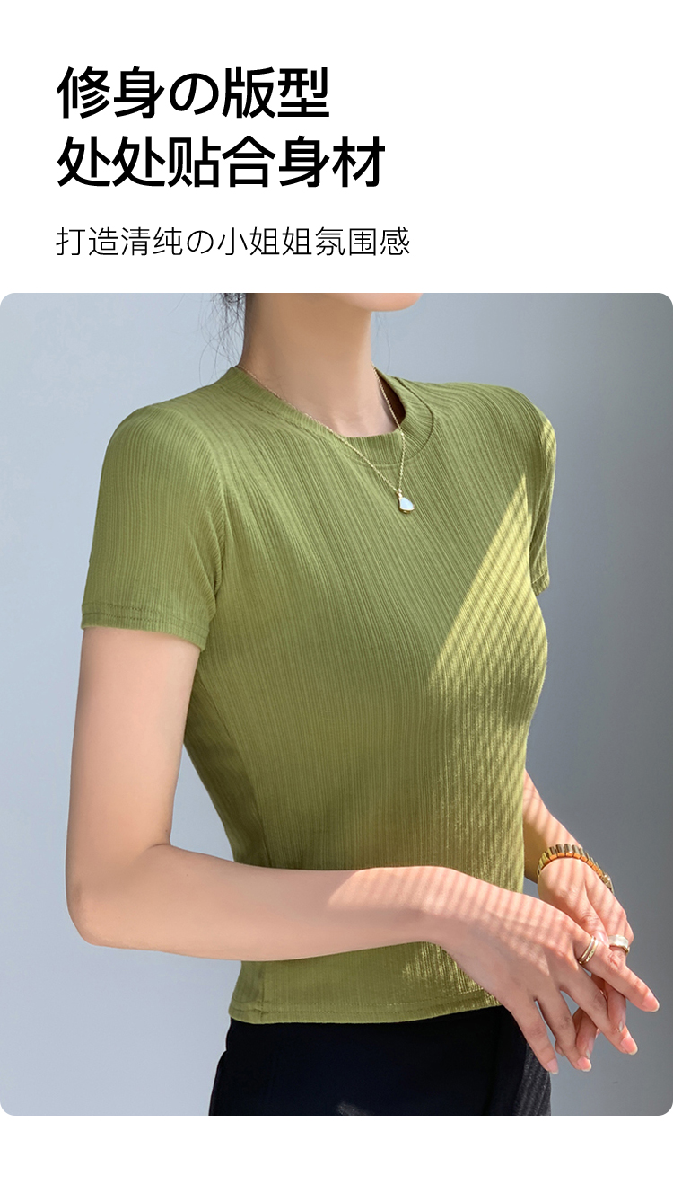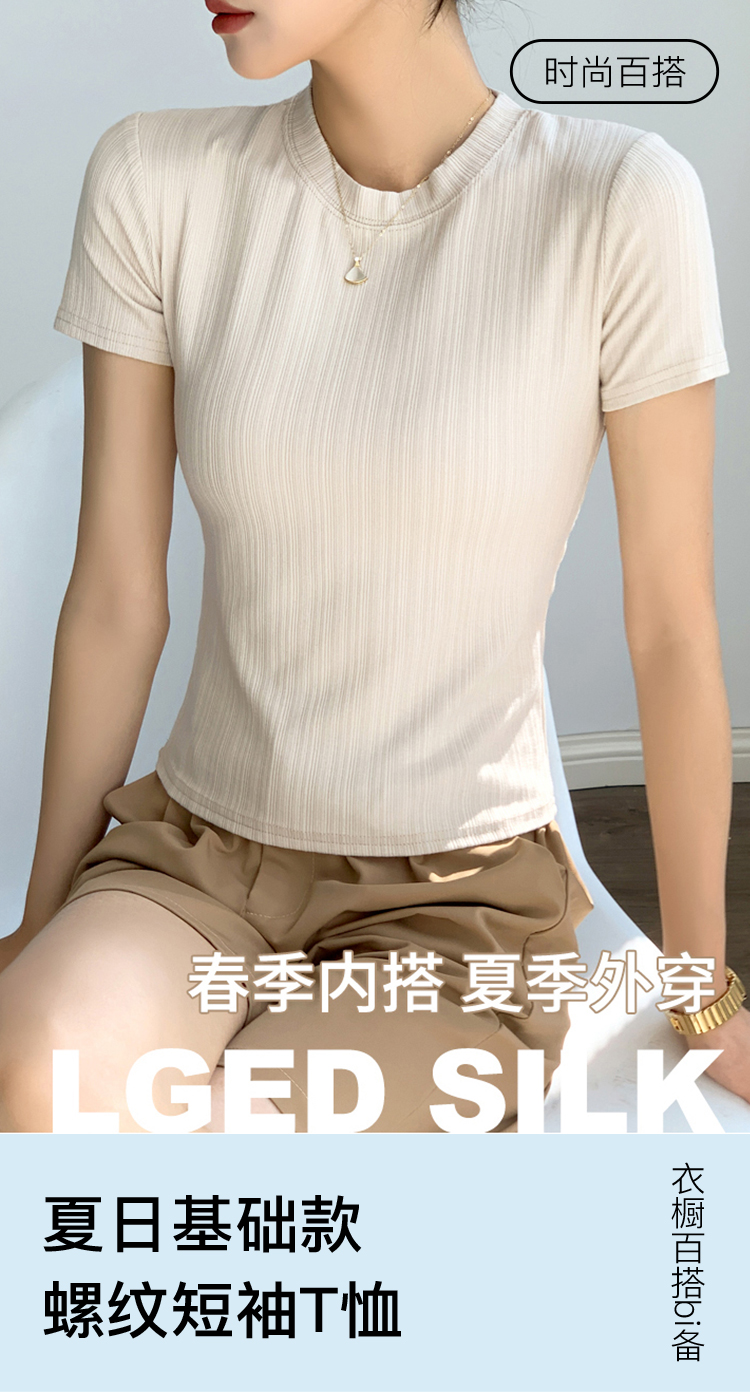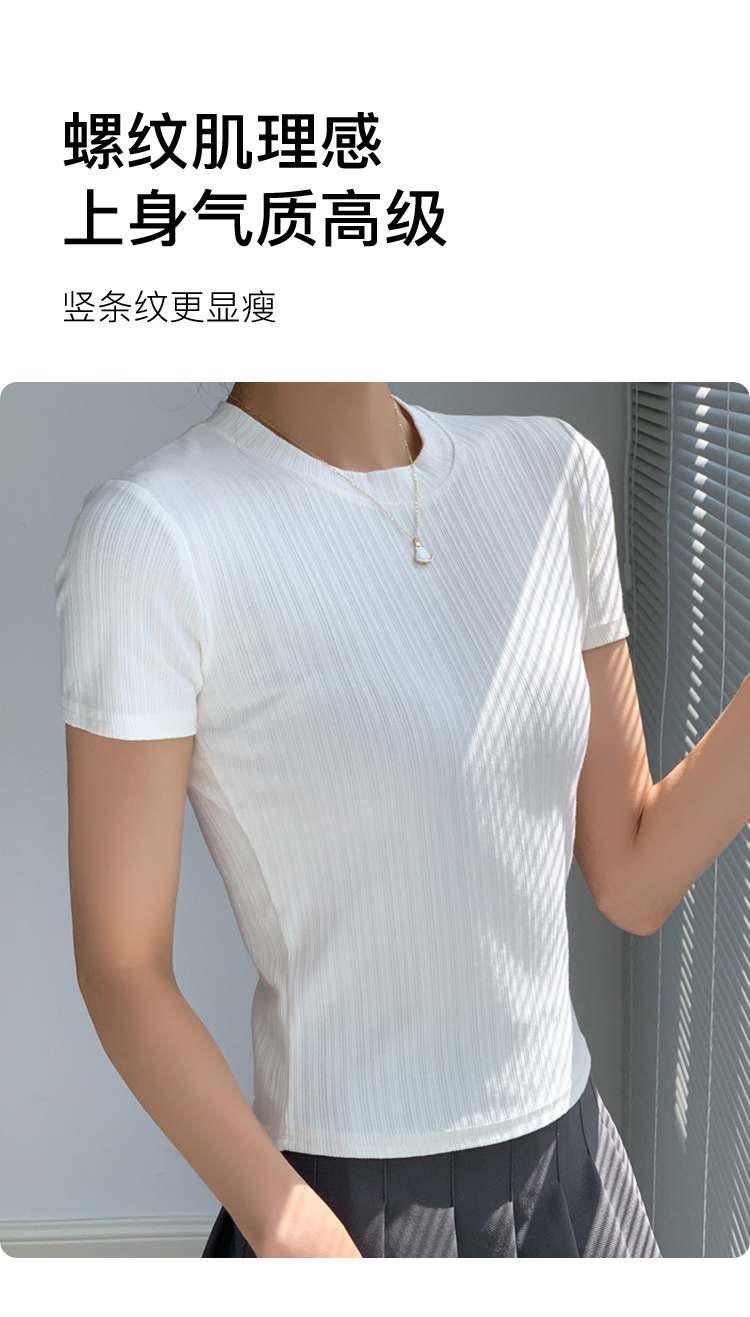 夏季薄款高弹修身显瘦打底T恤圆领短袖上衣女时尚内搭可外穿24311#百搭螺纹短袖