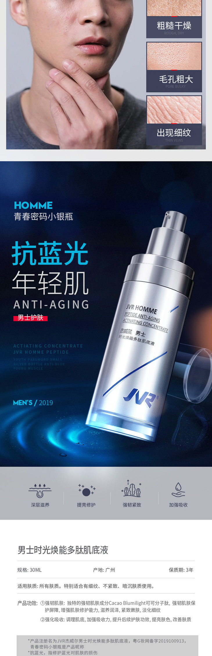 杰威尔男士时光焕能多肽精华肌底液30ml