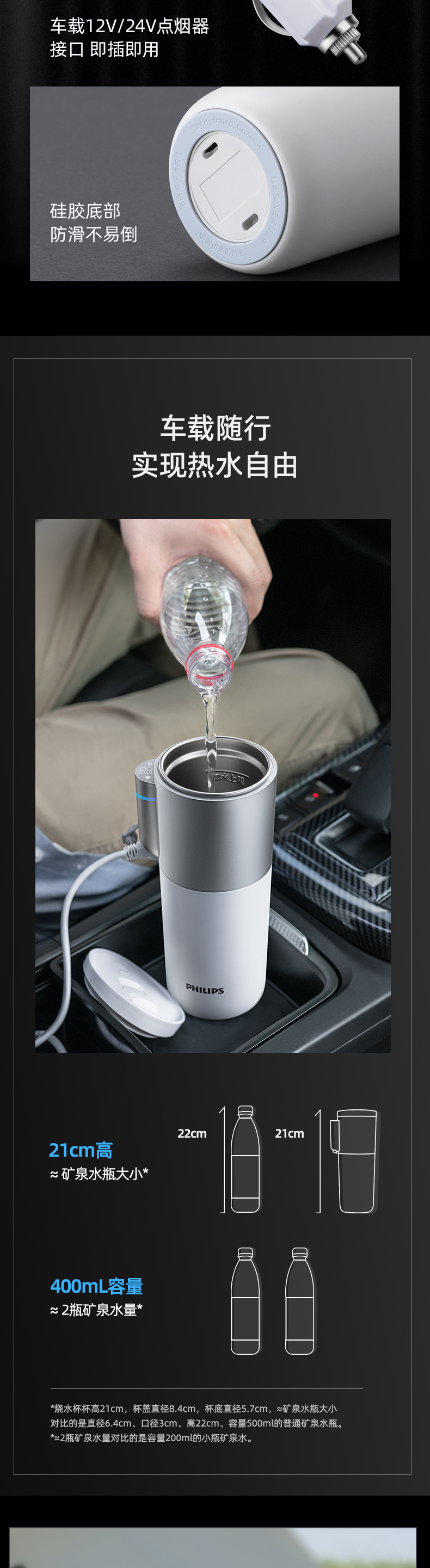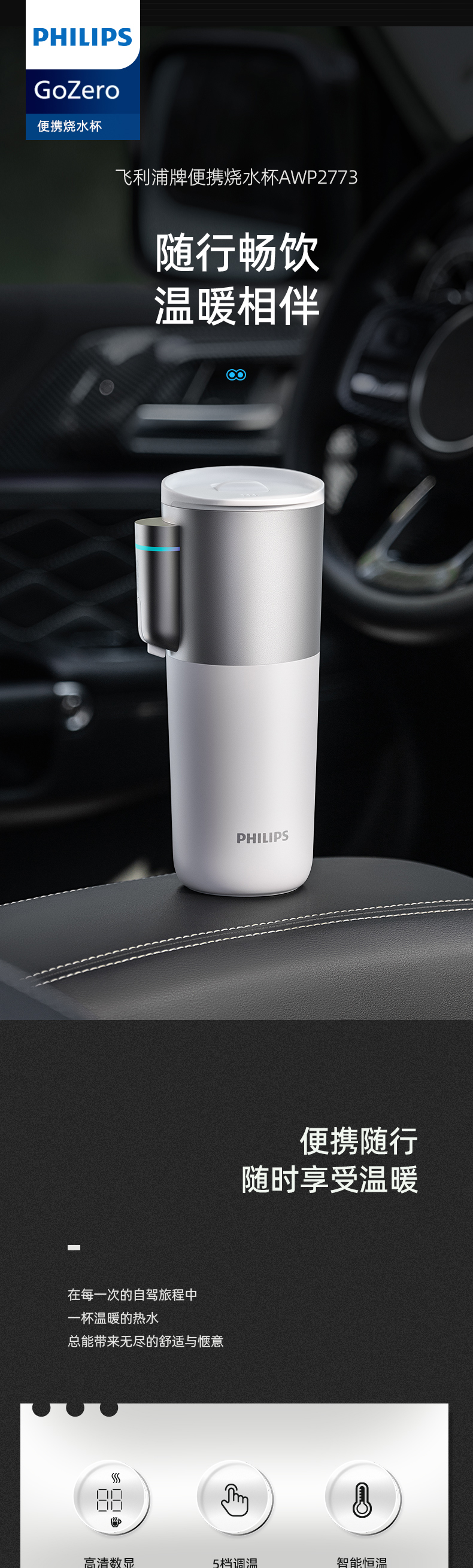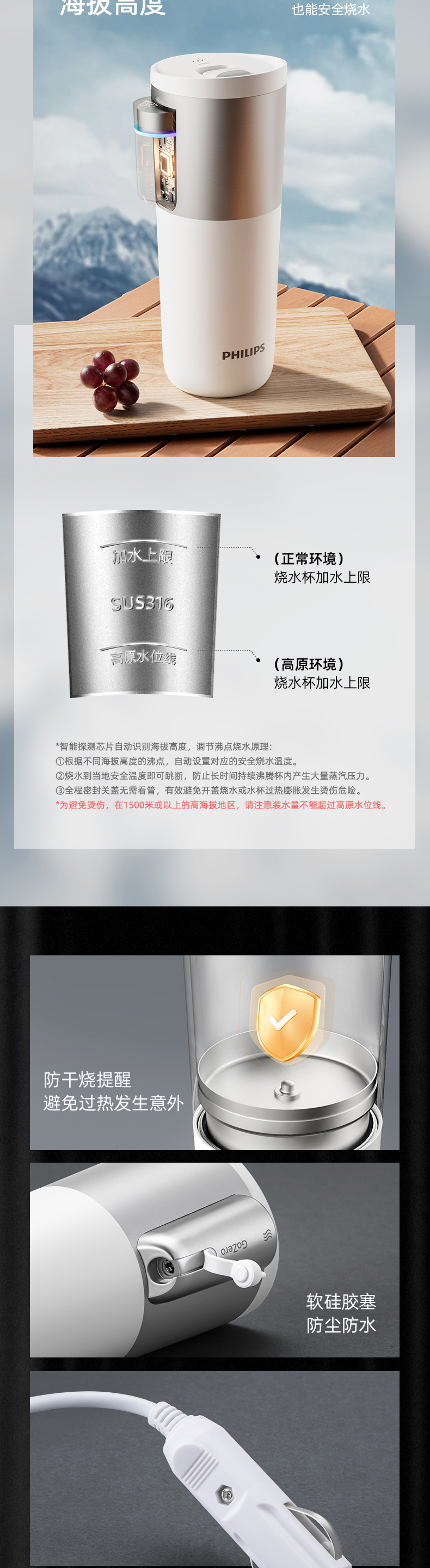 飞利浦便携车载烧水杯旅行宿舍办公室水壶加热保温杯电热杯AWP2773