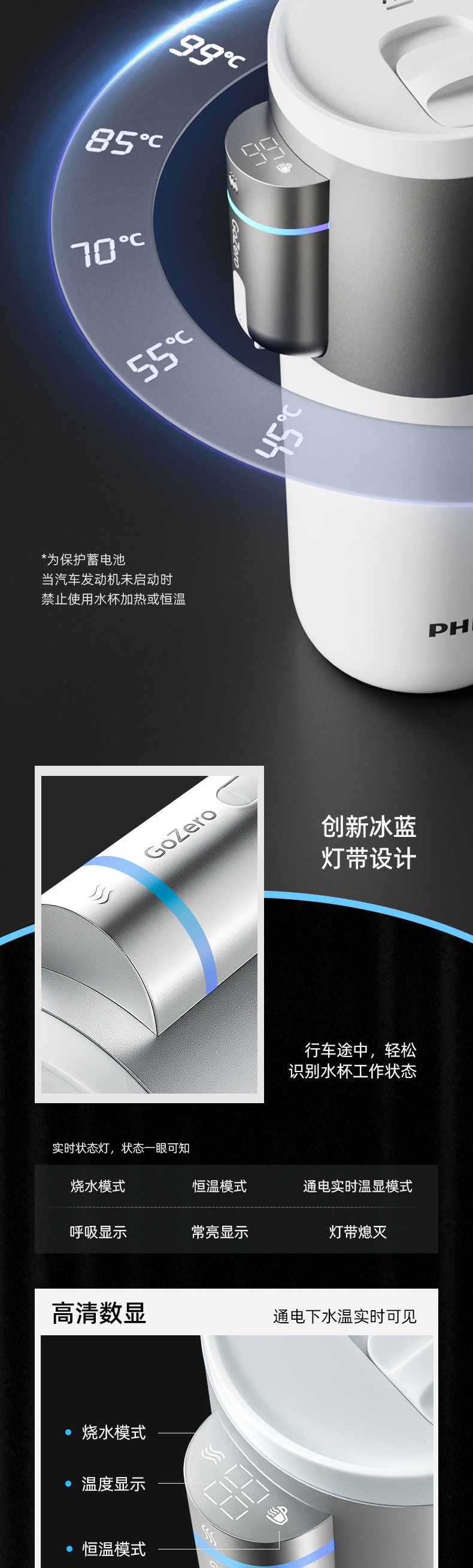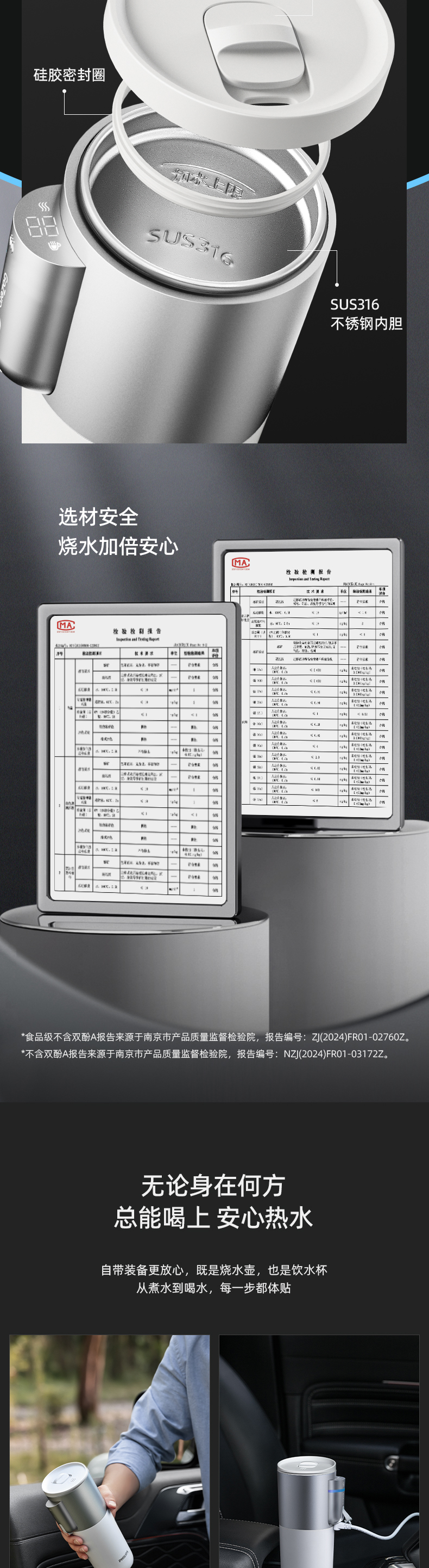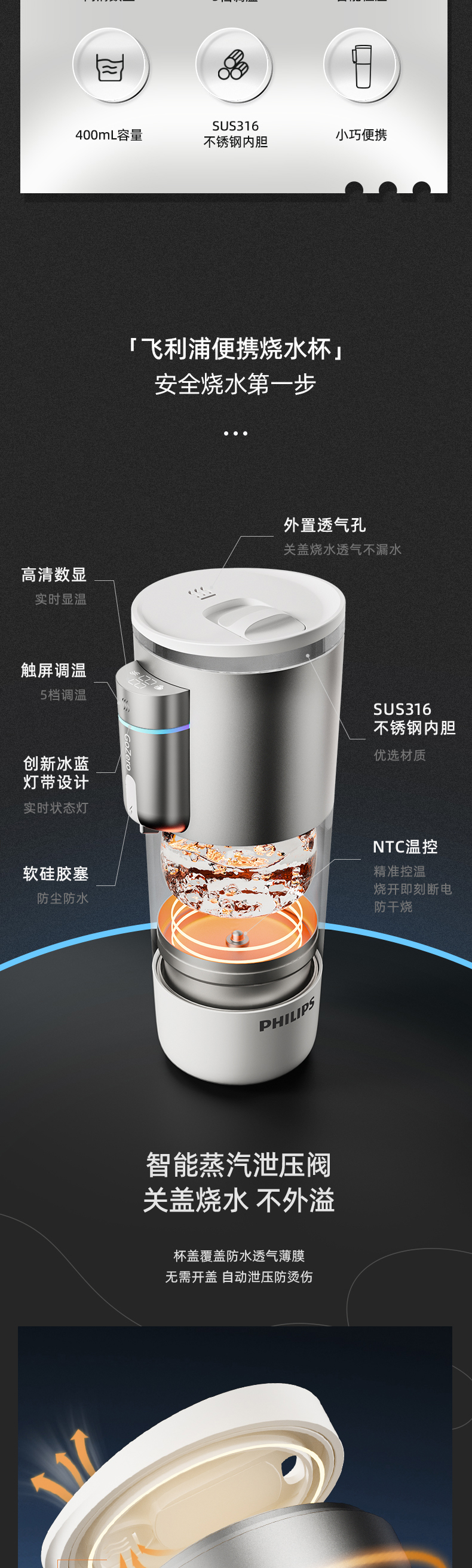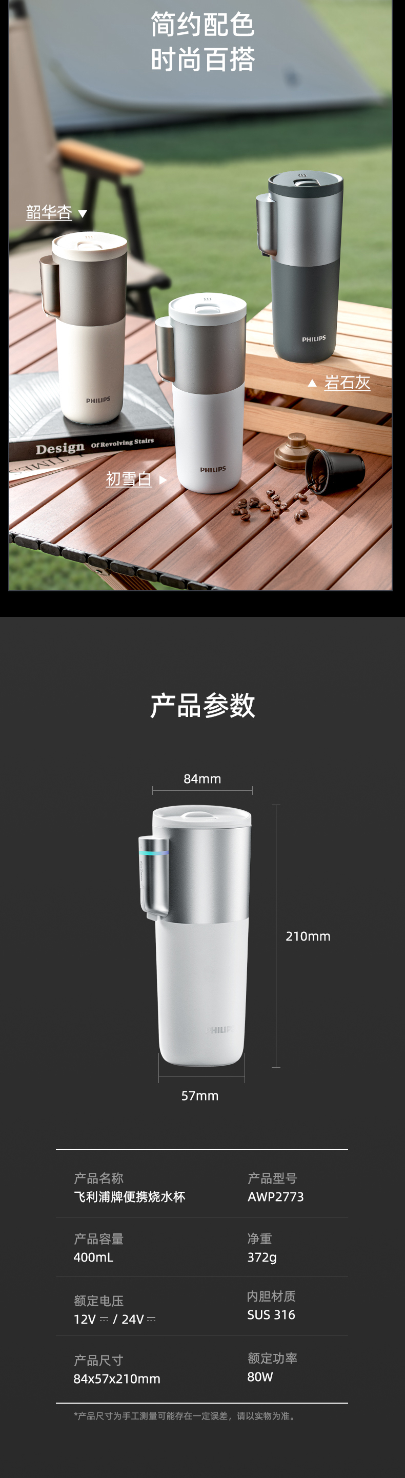 飞利浦便携车载烧水杯旅行宿舍办公室水壶加热保温杯电热杯AWP2773