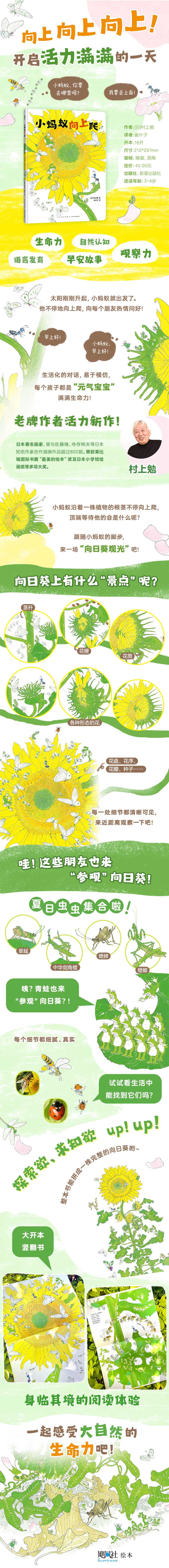 小蚂蚁向上爬(活力满满的早安绘本,每个孩子都是元气宝宝,属于低龄宝宝的自然认知绘本,大开本竖翻书,一场书页间的向日葵观光)(村上勉 著)
